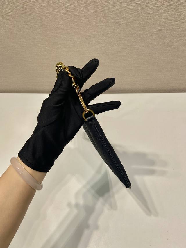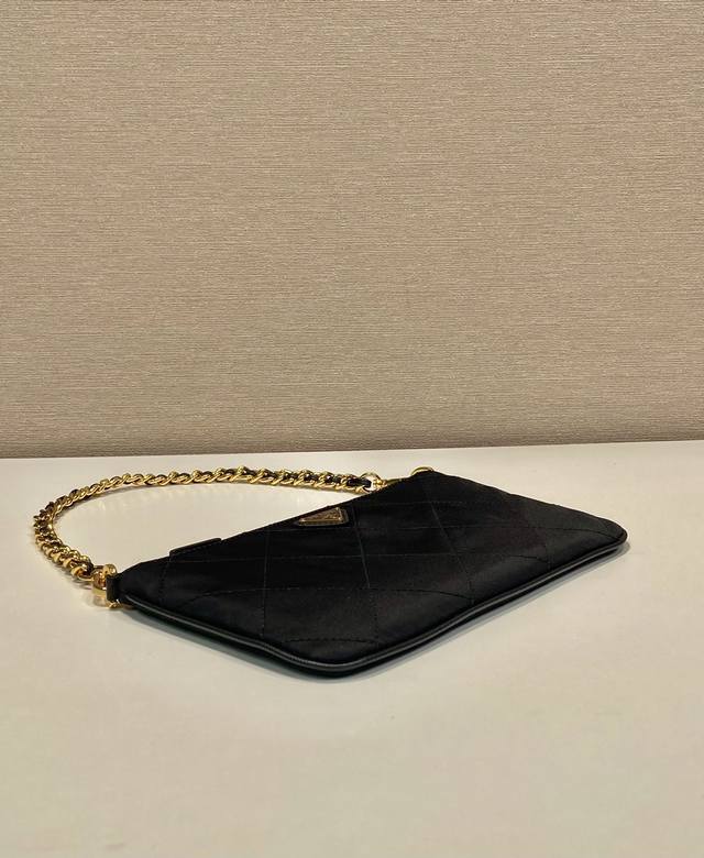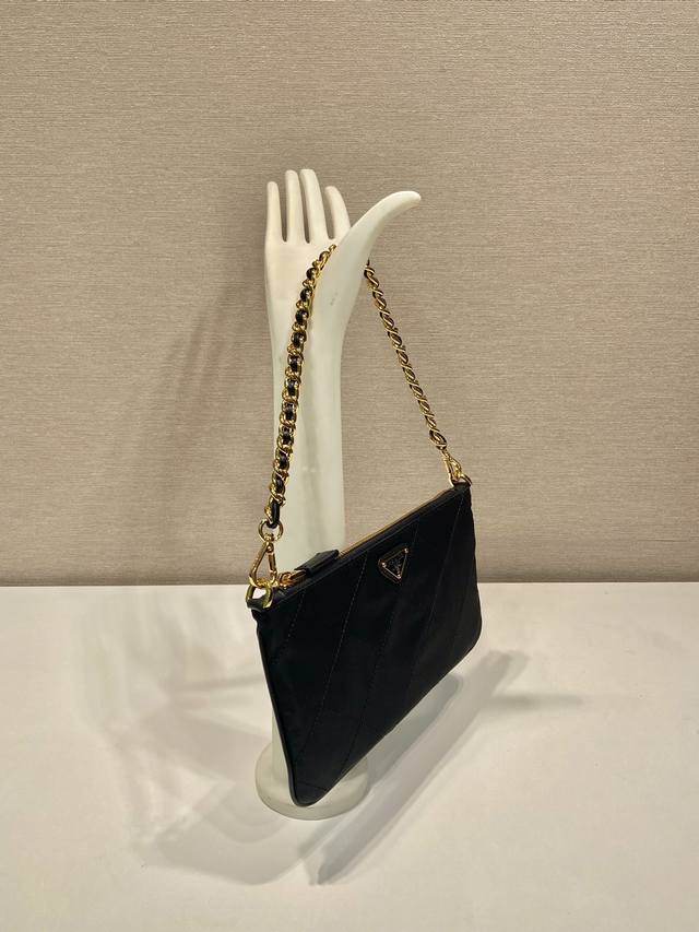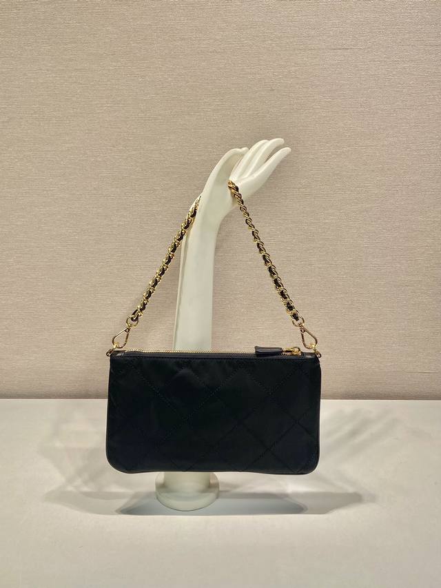 Embroidered Hobo1Nl054 Underarm Bag. This underarm bag is crafted from recycled nylon and features a simple, elegant design. It features a chain handle, tonal stitching, and an enameled triangular metal logo. The bag is lightweight and practical. Length: 24.5cm x Height: 14cm.