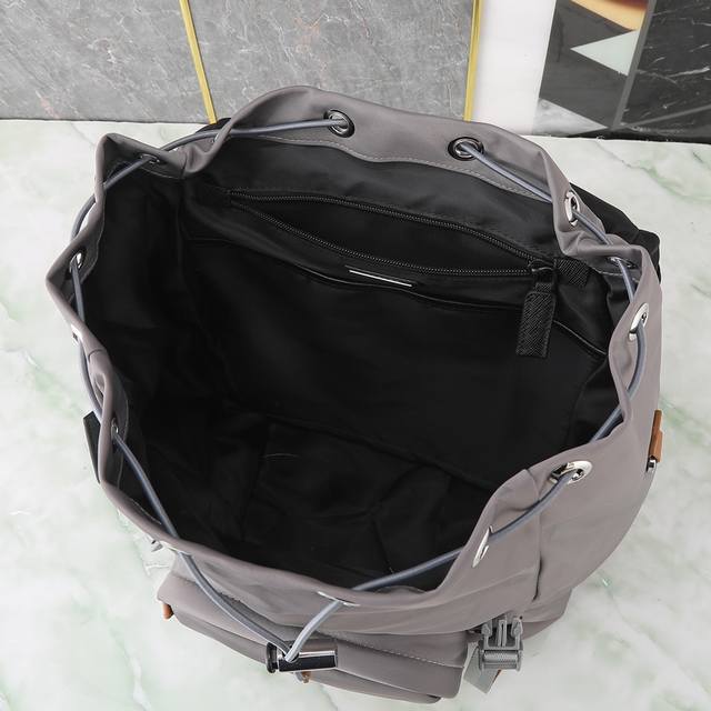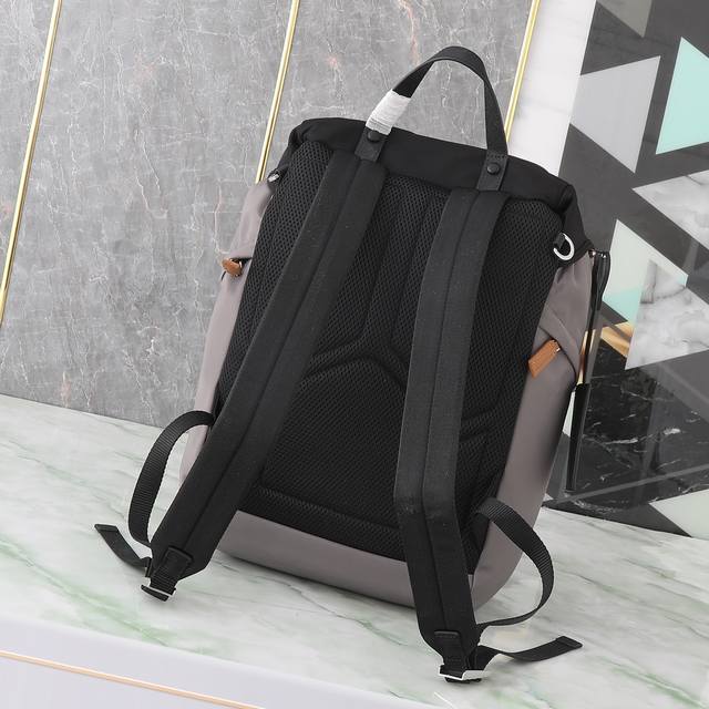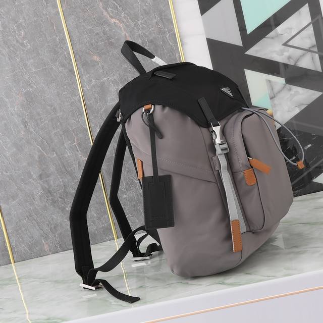 Exclusive First Look: 2Vz135 Backpack. This nylon backpack features Saffiano leather trim, crafted with creativity and technology to create a unique style. Multiple pockets and a technically padded back panel add a distinctive design element. A classic yet modern design, stylish and sophisticated, a timeless classic. Length 27 x Height 45 x Bottom 17 cm.