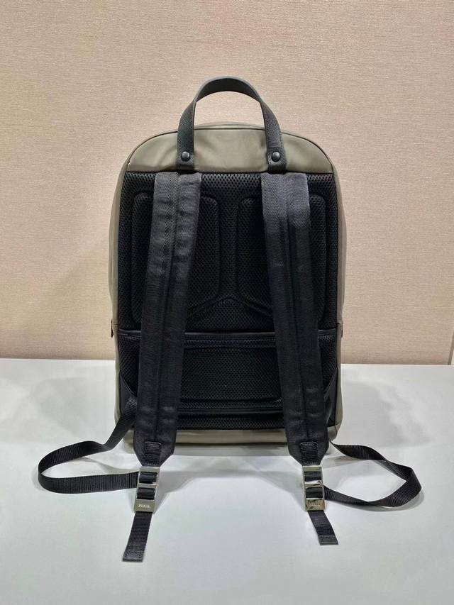 Exclusive First Release: 2Vz048 Backpack, Original Quality. This backpack features imported Saffiano leather trim, showcasing a modern minimalist design. It's constructed from imported nylon fabric and cross-grain cowhide, with top-quality polished metal hardware. The padded back panel provides excellent comfort and can also be placed on a rolling suitcase. The functional compartments are fantastic. Simple yet stylish, this backpack is a must-have for men. Grab yours now! Dimensions: 31cm (L) x 43.5cm (H) x 20cm (