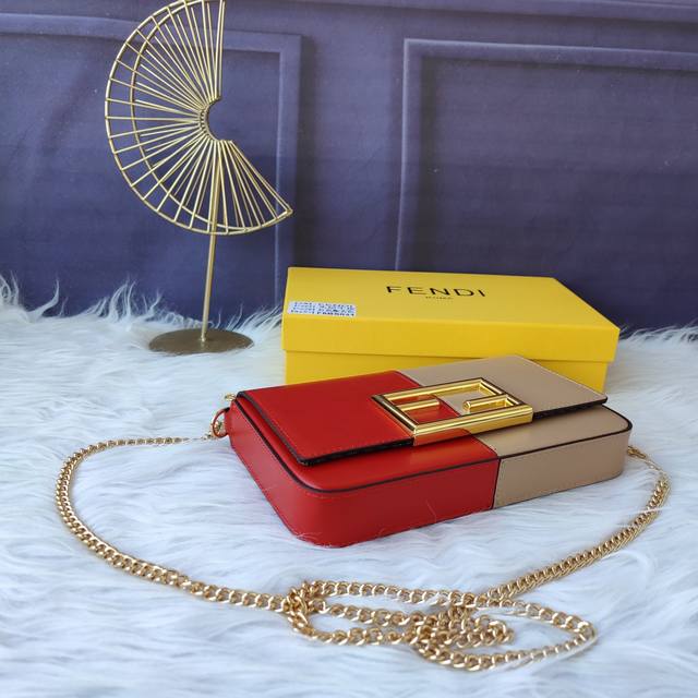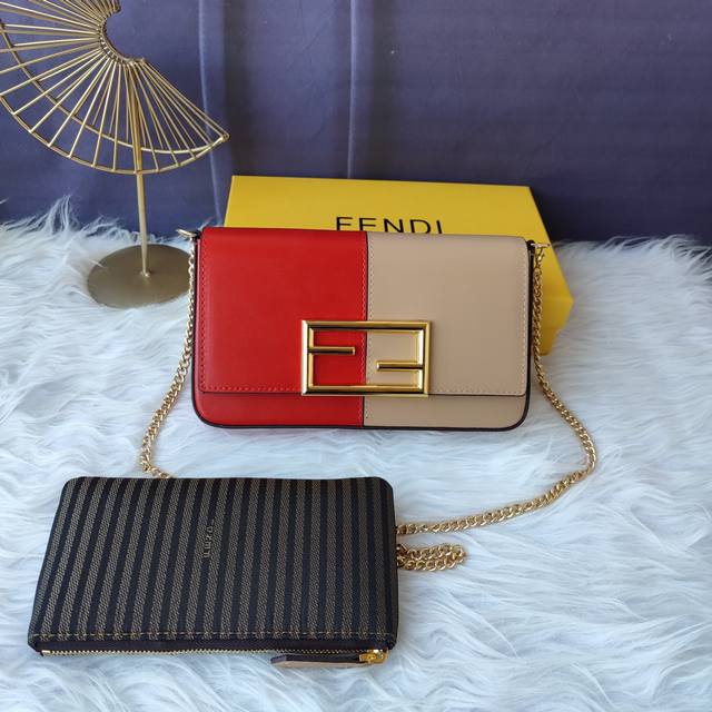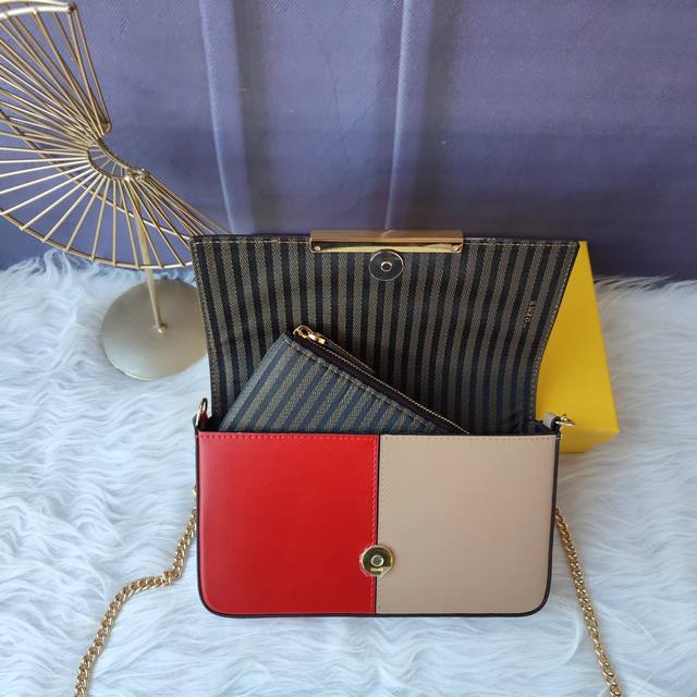 / F8Bs034 Red and apricot leather mini bag with flap and snap closure, pequin fabr