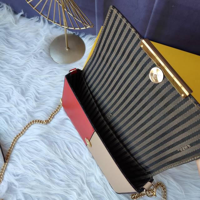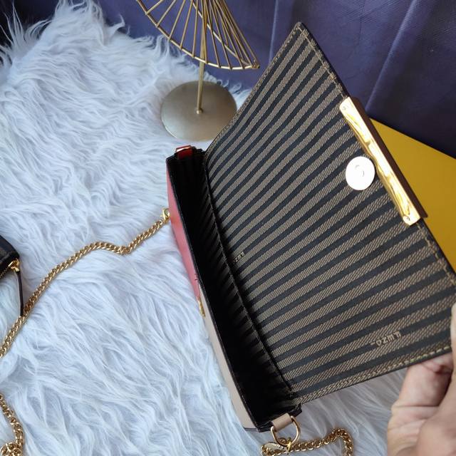 F8Bs034 Red and apricot leather mini bag with flap and snap closure, pequin fabric shoulder bag and flat pockets. Dimensions 21.5cm - 13cm - 3cm