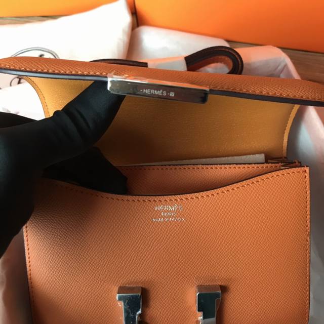 Factory price p with gift box, Constance 19cm, imported Epsom leather with gold and silver buckles. Top-quality craftsmanship, a must-have for all seasons, a favorite among fashionistas. Wearing it will make you the most stylish woman on the street. Includes a serial number inside. Real photos of our own products.