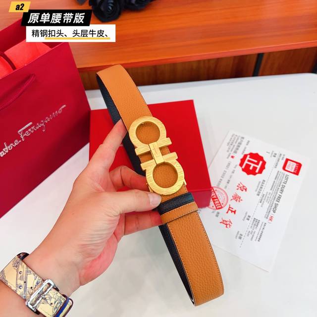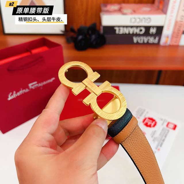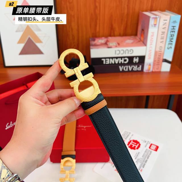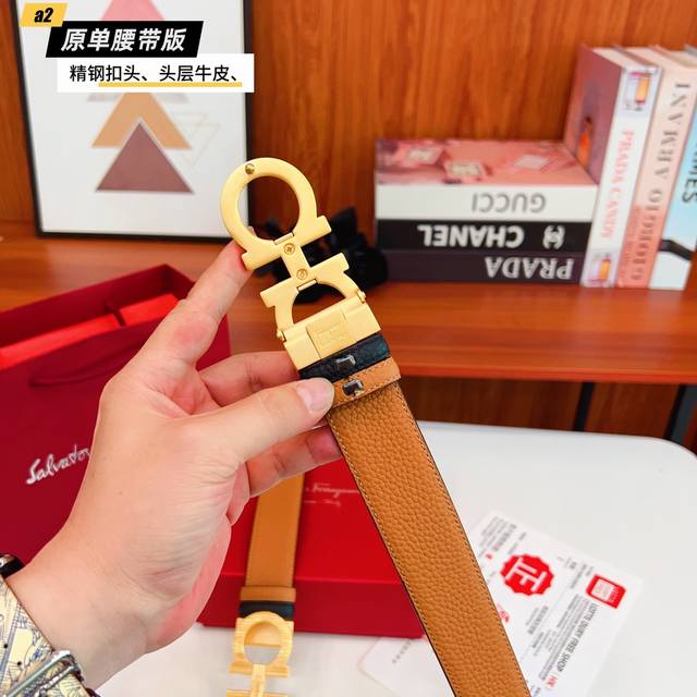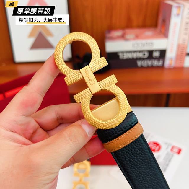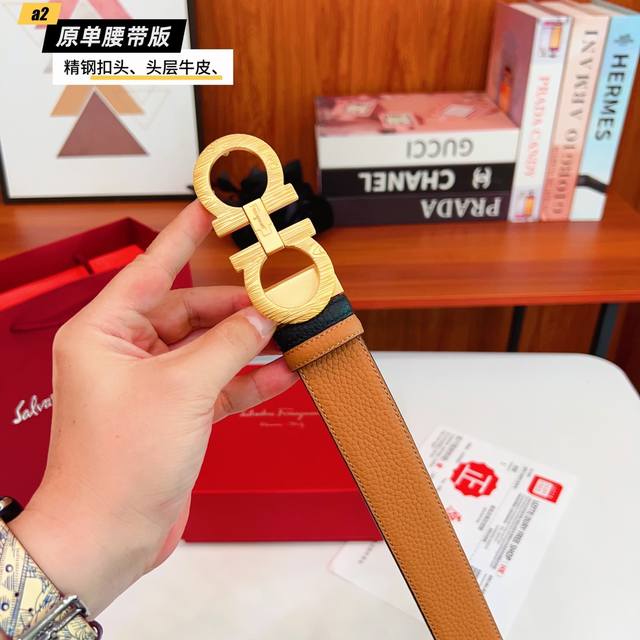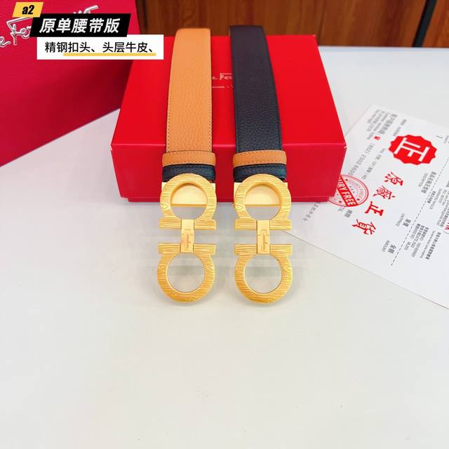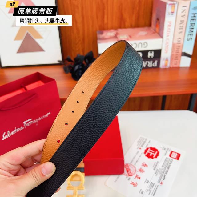 Ferrago F Double-sided top layer cowhide New effect Stainless steel material Buckle width 35mm The belt is adjustable and can be cut as needed to achieve a slim fit