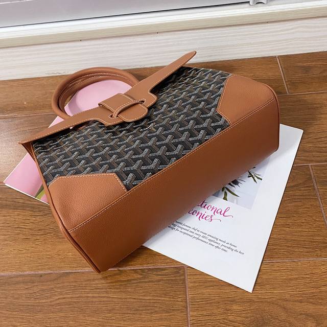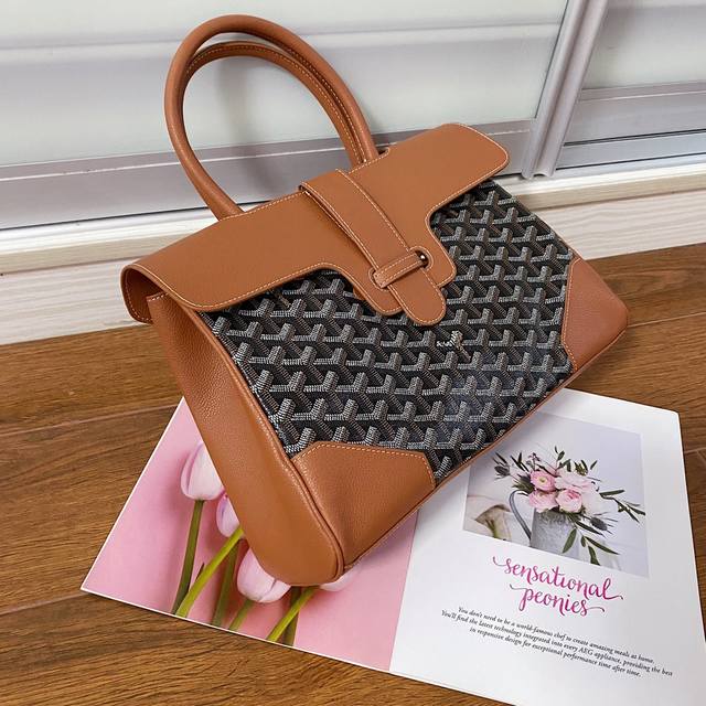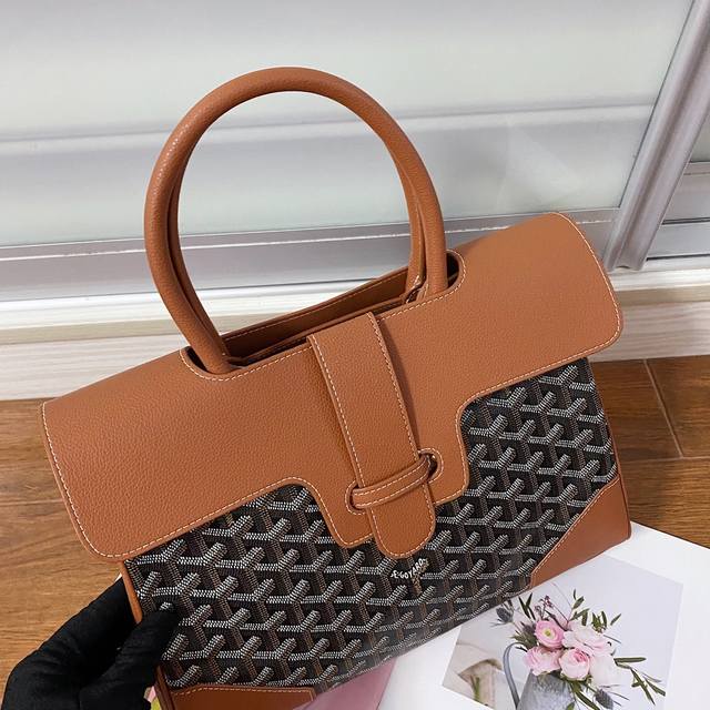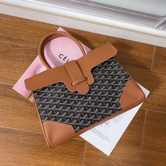 Goyar Sagon Tote The Sagon Tote perfectly balances the casualness of a tote with the sophistication of a handbag. It can be easily transformed to provide a variety of styles and ways of wearing. Whether the bag is open or closed, inside or outside, it complements every moment of a woman's life. Original leather, original hardware, size 34*16*25Cm