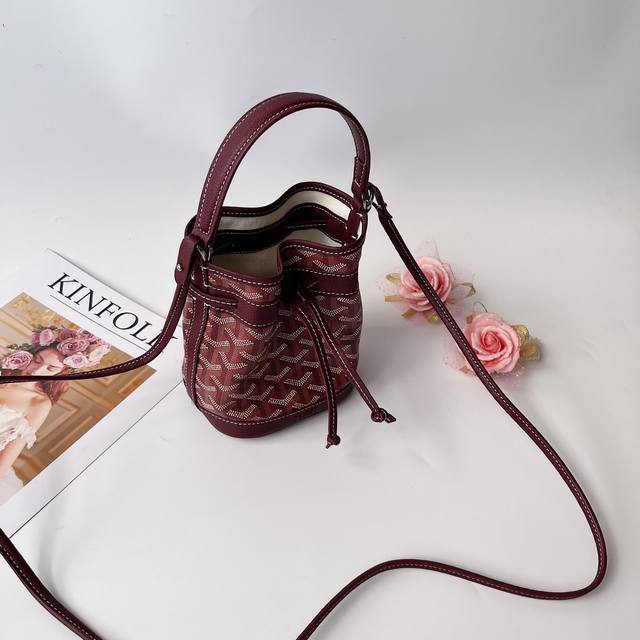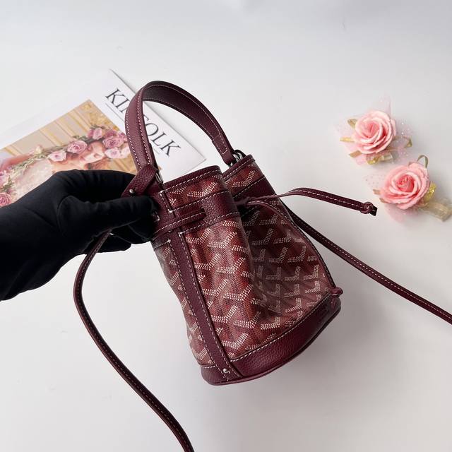 Goyard Mini Bucket Bag. This bucket bag is called Petit Flot, which refers to the wood transportation industry passed down by the Goyard family for generations. It is derived from a jacquard bag launched by Goyard in the 1960s. Model number: Mini Bucket Bag. Original leather, original hardware, size 12*10*17.5cm