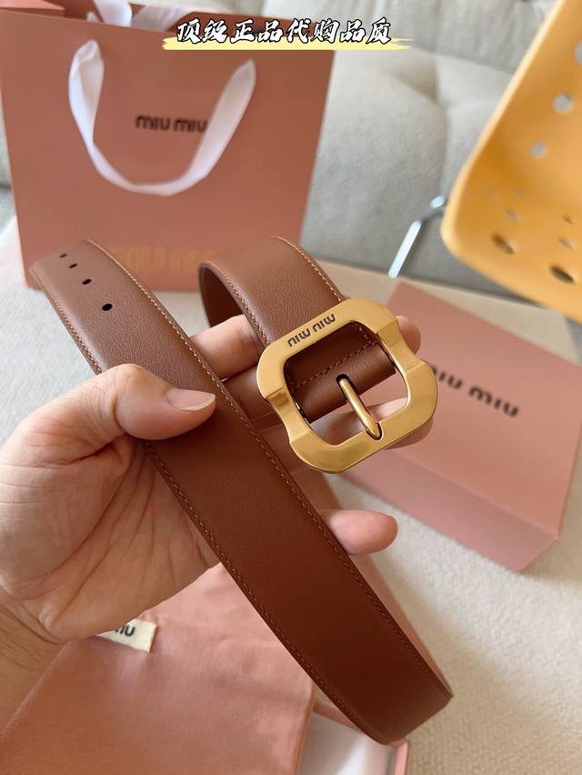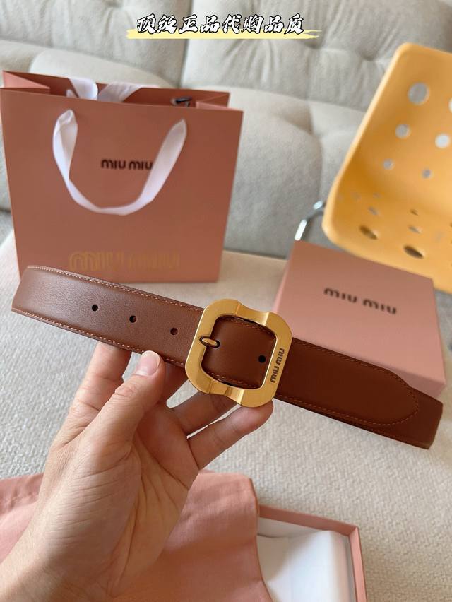 Guangzhou factory p direct hair Miu Miu This leather belt is simple and elegant. The metal buckle is embellished with the Miu Miu logo, which clearly shows the brand style. The combination of metal details and iconic elements highlights the exquisite material of Miu Miu belt. Versatile, practical, casual and elegant, it can be easily controlled by any style! Belt width: 35mm