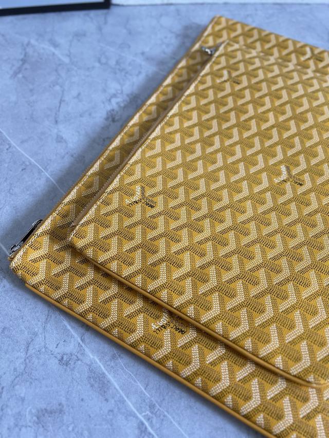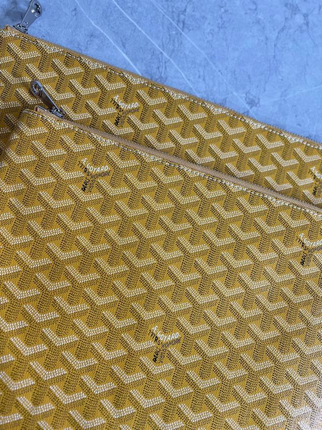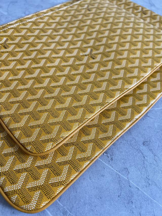 Goyar elegant clutch is the ideal companion for storing everyday personal items. It can be easily switched between a casual daytime clutch and an evening bag, and can also be used as a storage pouch inside a larger bag. Large size: 40*30cm. Medium size: 30*20cm.