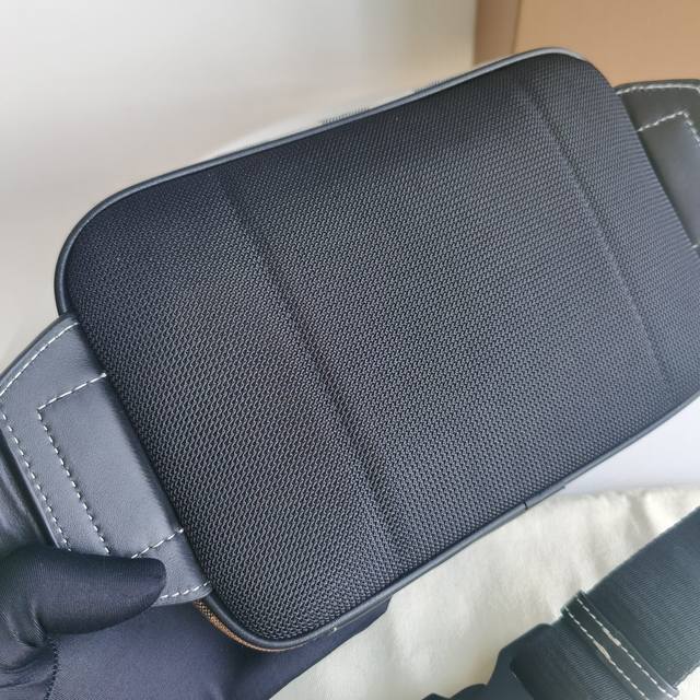 Latest waist bag street style, made of Econyl material with logo decoration, decorated with luxurious leather details, zipper pocket for easy storage of personal belongings; can be used as a crossbody or tied around the waist. Size: 24 X 5 X 15, 40766