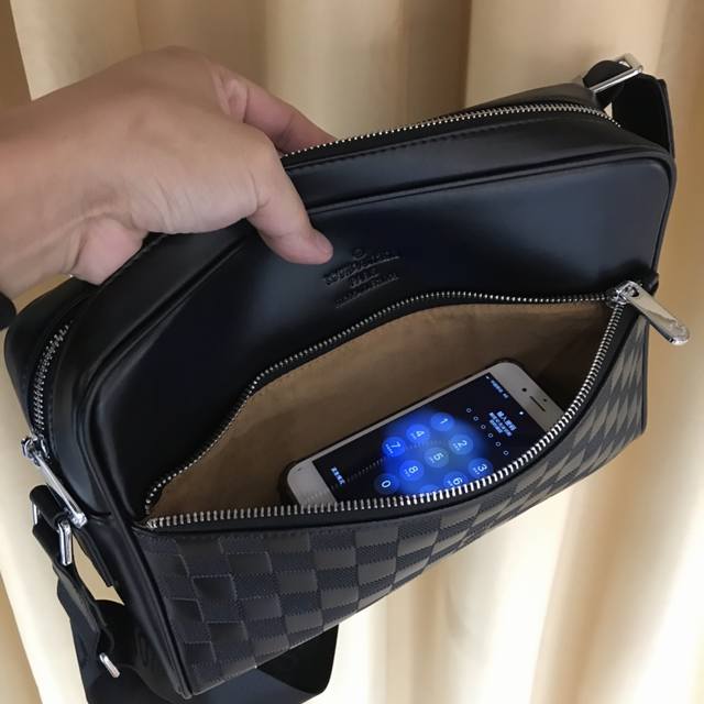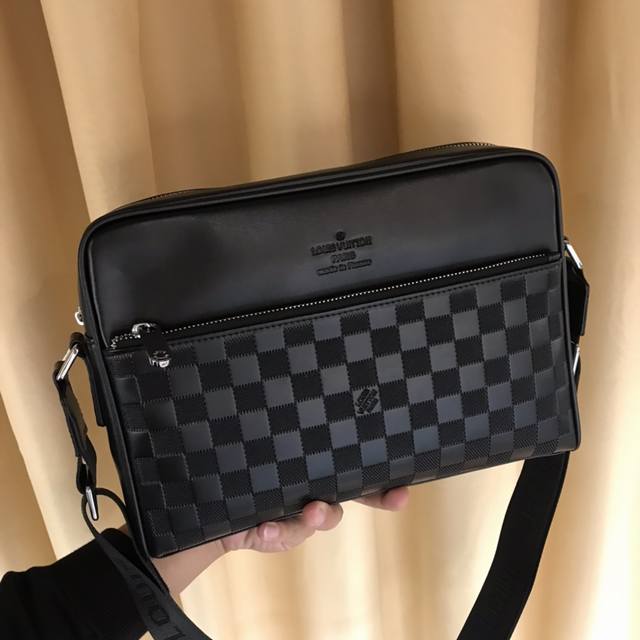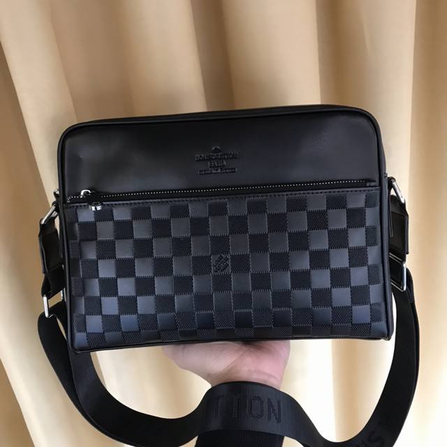 Launches the hottest messenger bag. Made of top-grade Italian imported cowhide. All the stainless steel hardware has the brand logo. Look at the glossiness of the leather, the oil edge, and the stitching. It is the highest quality on the market. No other choice. It is the first choice for those who know the goods. Size: 25.28.5, Color: Black Model: 325-4