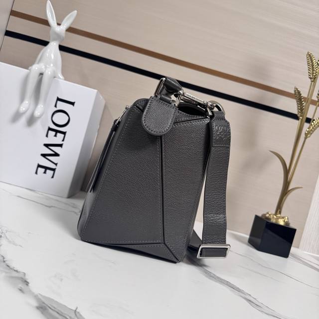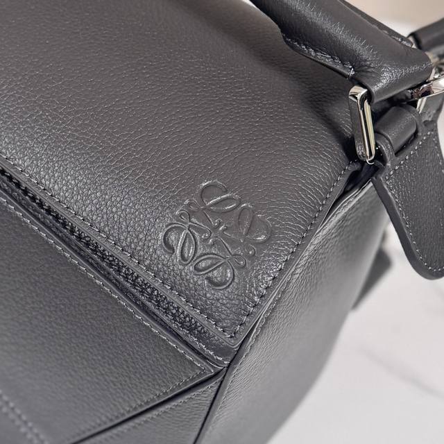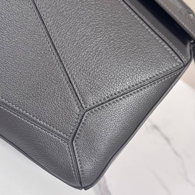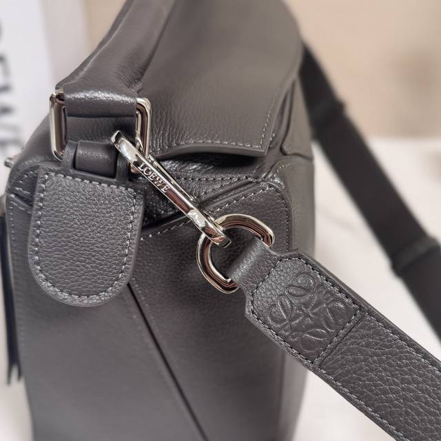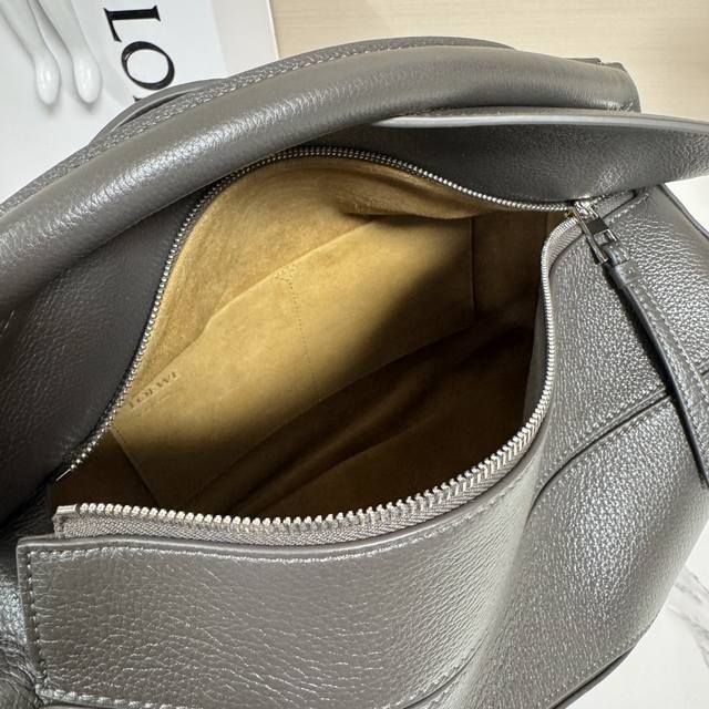 Low New Size Large Soft Deerskin Puzzle Handbag with a distinctive geometric rectangular shape. This large version is crafted from deerskin leather. * Shoulder, crossbody, or hand carry * Detachable and adjustable shoulder strap * Zip closure with cowhide zipper pull * One external zippered back pocket, two internal slip pockets * Suede lining with Anagram embossing.