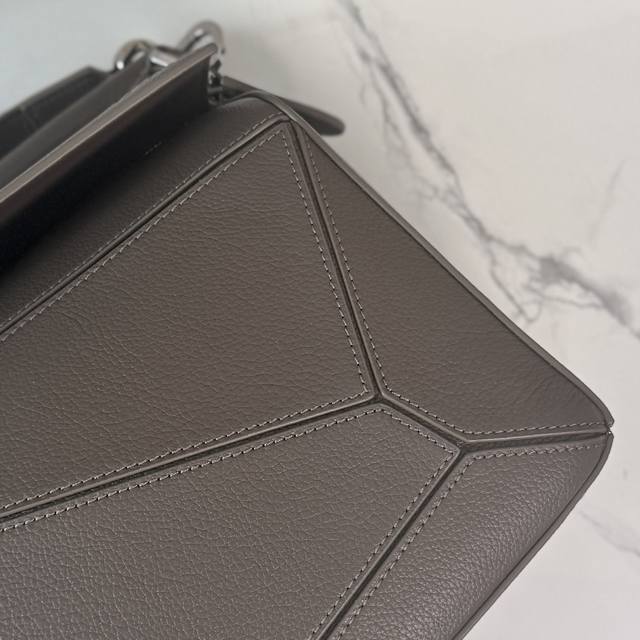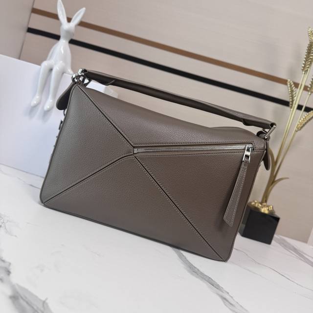 Low This large, soft deerskin puzzle bag features a rectangular shape defined by distinctive geometric lines. This large version is crafted from deerskin leather. * Can be carried on the shoulder, crossbody, or by hand. * Detachable and adjustable shoulder strap. * Zip closure with cowhide zipper pull. * One exterior zippered back pocket and two interior slip pockets. * Suede lining with anagram embossing.