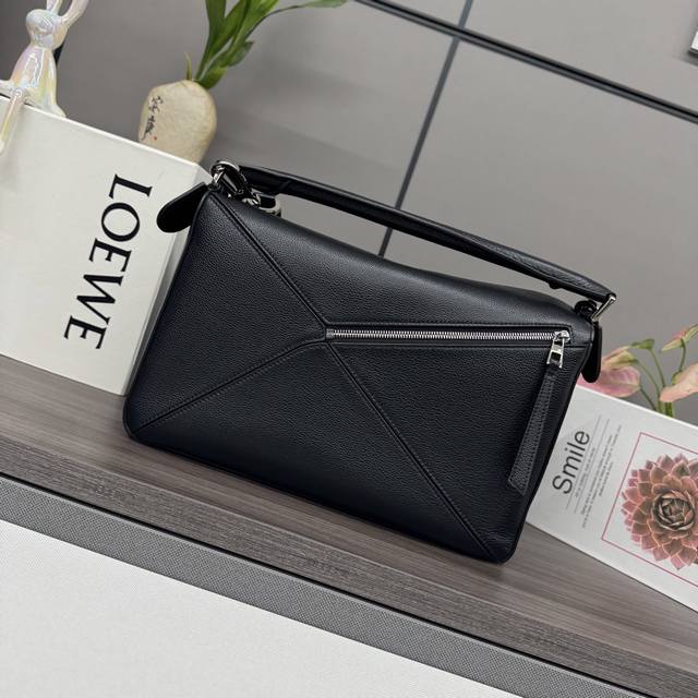 Low This new large, soft deerskin puzzle bag features a rectangular shape defined by distinctive geometric lines. This large version is crafted from deerskin leather. * Can be carried on the shoulder, crossbody, or by hand. * Detachable and adjustable shoulder strap. * Zip closure with cowhide zipper pull. * One exterior zippered back pocket and two interior slip pockets. * Suede lining with anagram embossing.