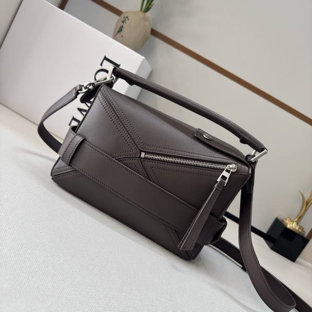 Luojia's new small shiny cowhide puzzle biker bag. The puzzle handbag features a rectangular shape defined by distinctive geometric lines. This small version is crafted from shiny cowhide leather and embellished with biker-inspired details. Can be carried on the shoulder, crossbody, or by hand. * Detachable and adjustable shoulder strap * Zip closure with cowhide zipper pull * One exterior zippered back pocket and one interior slip pocket. Herringbone cotton canvas lining * Anagram embossed. Size: 24*10.5*16.5cm. Model No.: 052517.