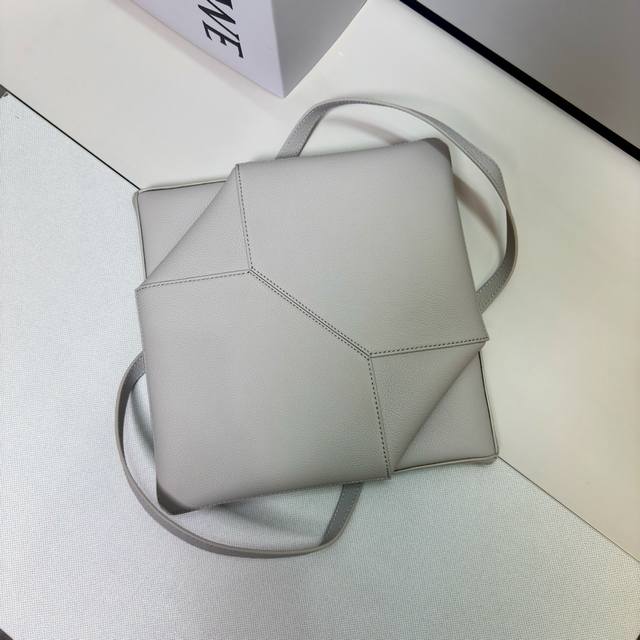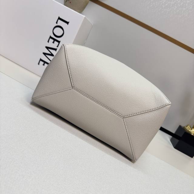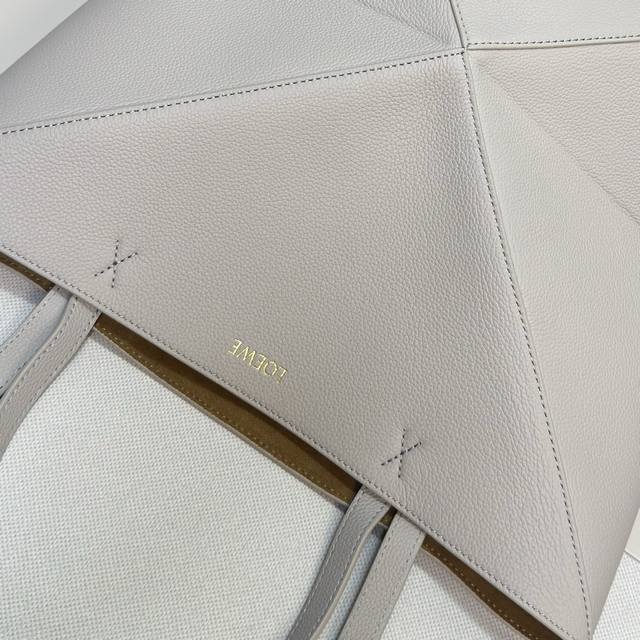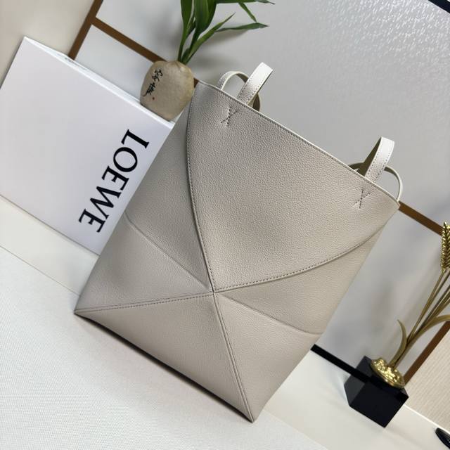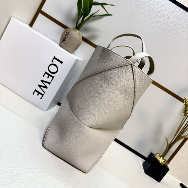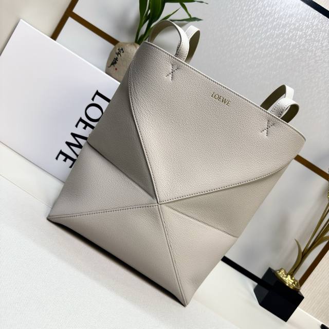 Lw New Small Soft Grained Calfskin Puzzle Fold Tote features a lightweight geometric design that folds completely flat, making it a perfect travel companion. This version is crafted from newly introduced soft grained calfskin for shoulder or hand carry and features redesigned graphic and architectural panels. It has a suede lining and Lw gold foil stamping. Size: 25.5*14.5*31.5CM. Model: 052316.
