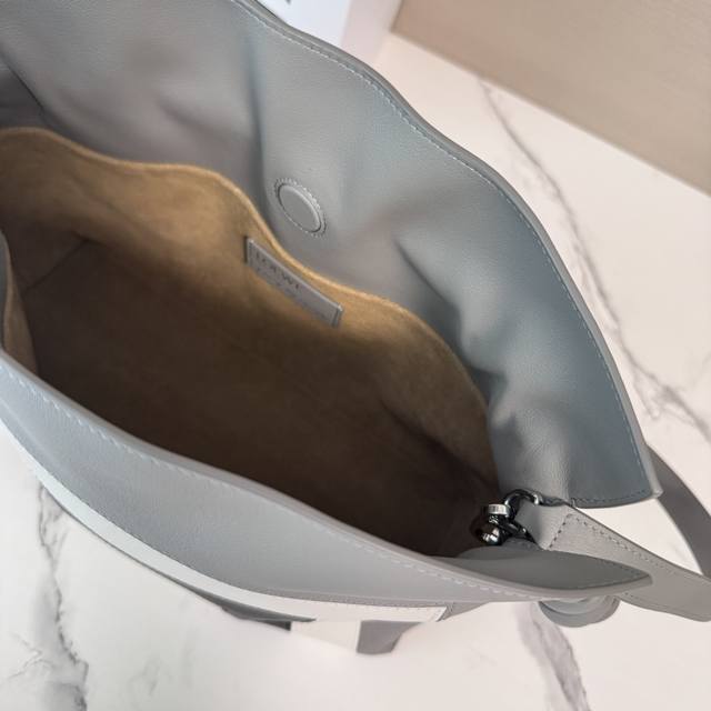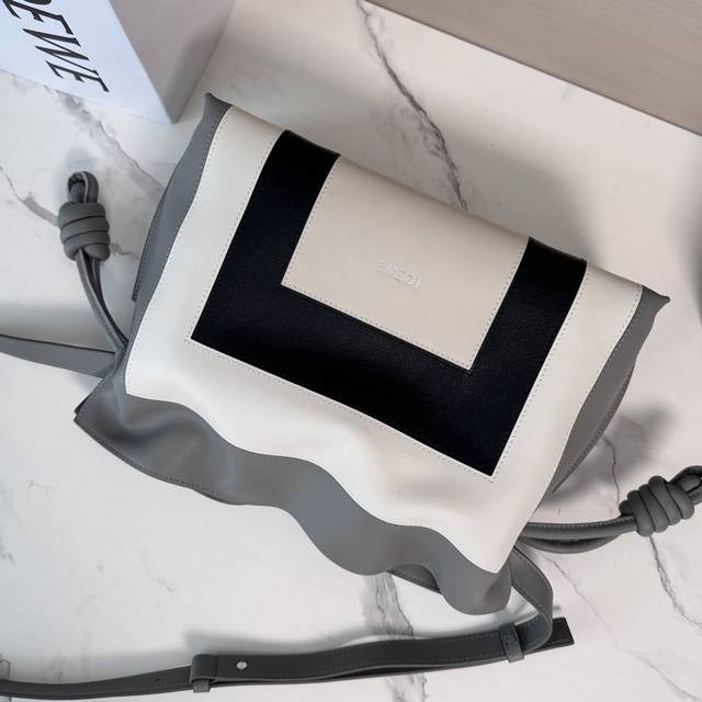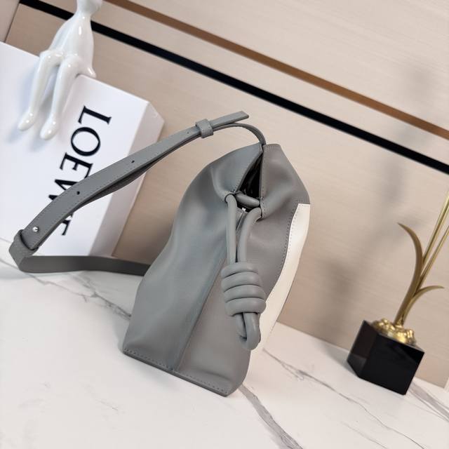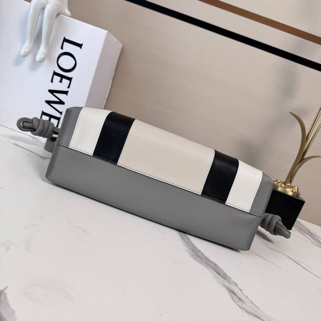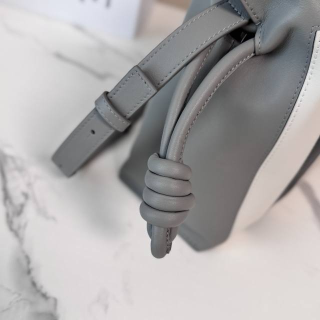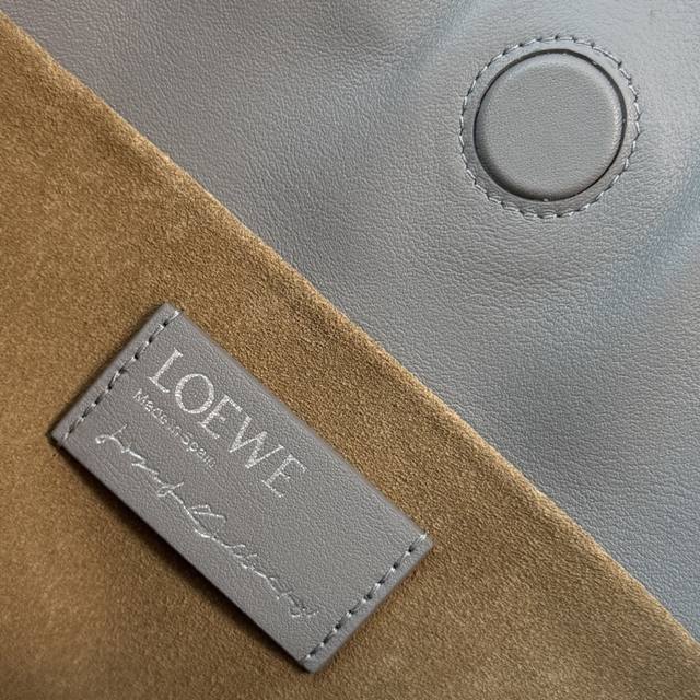 Lw The new Flamenco Lucky Bag features a relaxed style crafted from soft materials, and the drawstring design is embellished with a time-honored knot. This medium version is crafted from Nappa leather, featuring a square intarsia pattern inspired by Josef Albers's Homage to the Square collection. This bag is from the Loe**We