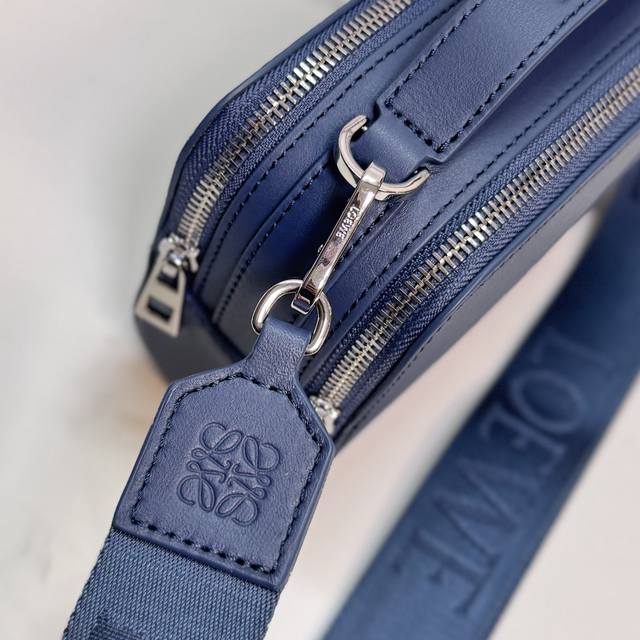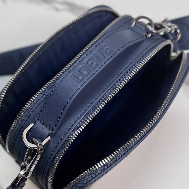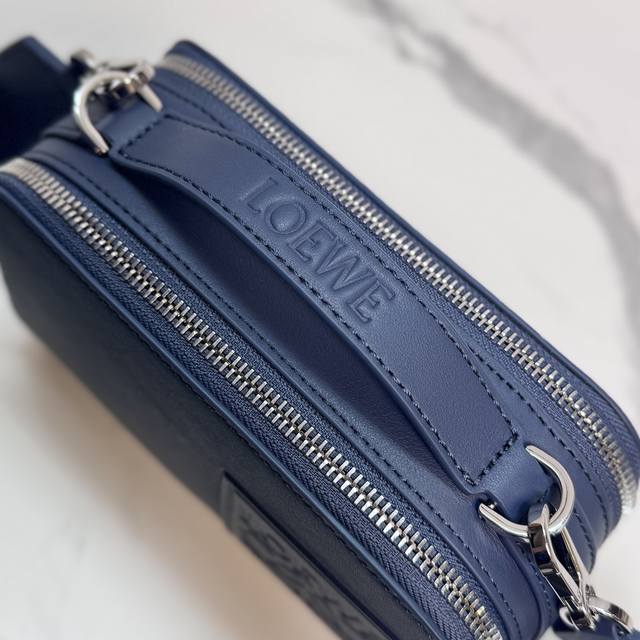 Lw's new multifunctional mini crossbody camera bag is practical and features two zippered compartments. This version is crafted from soft grained cowhide leather. Can be carried crossbody or by the top handle. *Adjustable and removable Lw webbing strap *Slip pocket *Herringbone cotton canvas lining *Anagram embossing