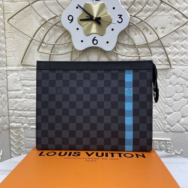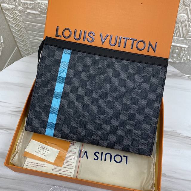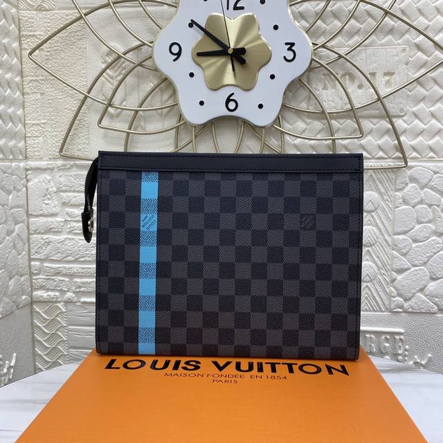 M64444, top-quality overseas original goods, size 27*21*6, exclusive design, this new Pochette Voyage handbag features highly expressive patterns and a strong nautical style. The time-honored classic V Gaston logo draws a dynamic and modern fashion line on the eye-catching new version of the Damier Latitude check pattern. It can be placed in a bag as a travel bag or held in the hand for a fashionable look. The spacious interior and the support board design make it easy to access personal essentials.