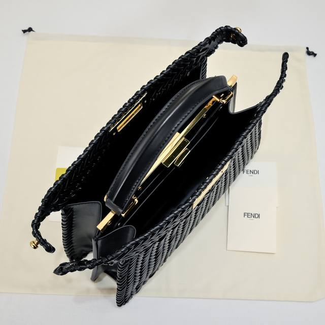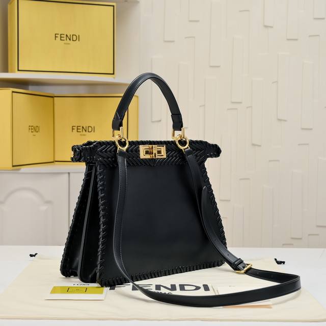 Model 3317 New Arrival! DDD New arrival, first release! DDD Iconic Peekaboo Iseeu large handbag, hand-woven leather. Features signature twist locks on both sides. The soft leather lining in the same color is visible from the outside. Two compartments are separated by a rigid divider, with a removable interior pocket and gold-tone hardware. Includes a handle and an adjustable, detachable shoulder strap for hand or shoulder carrying. Dimensions: 33cm DDD