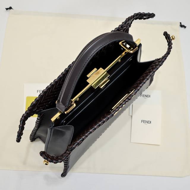 Model 3317 New Arrival! DDD New arrival, first release! DDD Iconic Peekaboo Iseeu large handbag, hand-woven leather. Features signature twist locks on both sides. The soft leather lining in the same color is visible from the outside. Two compartments are separated by a rigid divider, with a removable interior pocket and gold-tone hardware. Includes a handle and an adjustable, detachable shoulder strap for hand or shoulder carrying. Dimensions: 33cm DDD