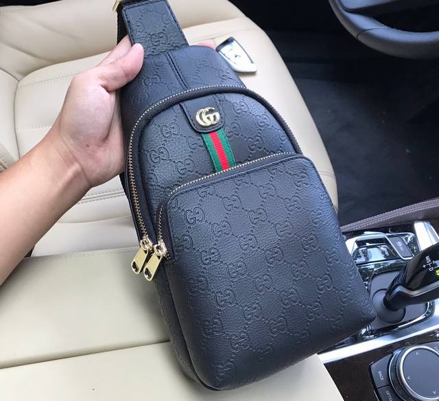 Model: 33230-2# Black Original single-item bag with imported hardware and wrist buckle, a popular style men's chest bag, made with original imported top-grain cowhide, high-end quality! Italian original cowhide, welcome to compare. Elegant design, adhering to rigorous and meticulous craftsmanship, exquisite and durable men's bag, quality determines taste. Specifications: 16X30X7Cm
