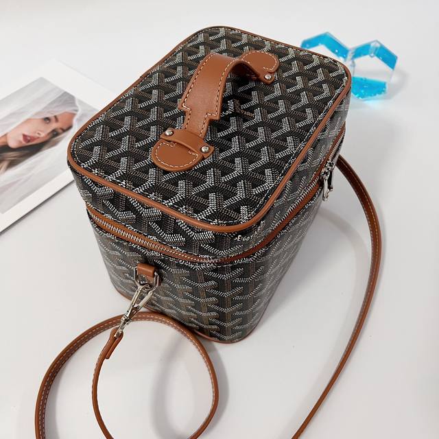 Muse The interior of the cosmetic bag is very clever, thanks to the sliding elastic fixing strap system, it can safely accommodate various bottles of cosmetics and other toiletries. An additional shoulder strap provides multiple carrying methods: hand, shoulder and crossbody Size 16 14 20