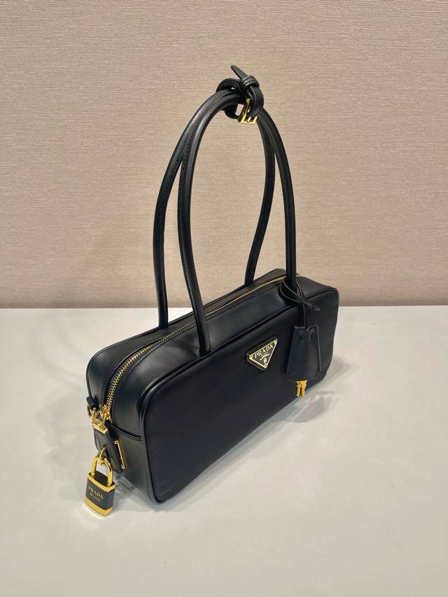 New 1Bb133 Nylon Tote Bag. This Tessuto Tocker handbag features a crisp yet compact design, crafted from recycled nylon and imported calfskin leather. It features a long, detachable shoulder strap for a refined and elegant look. Decorated with metal hardware, the zipper and padlock closure add a touch of chic. With its spacious interior, this is another timeless favorite, so hurry and get yours!