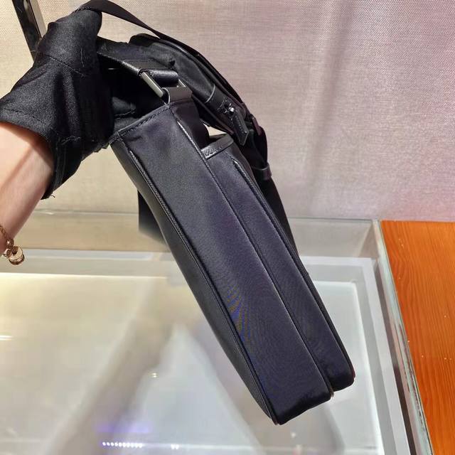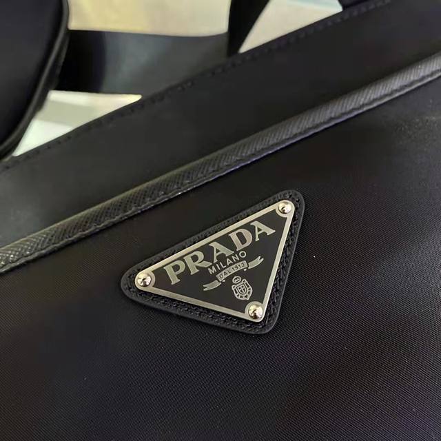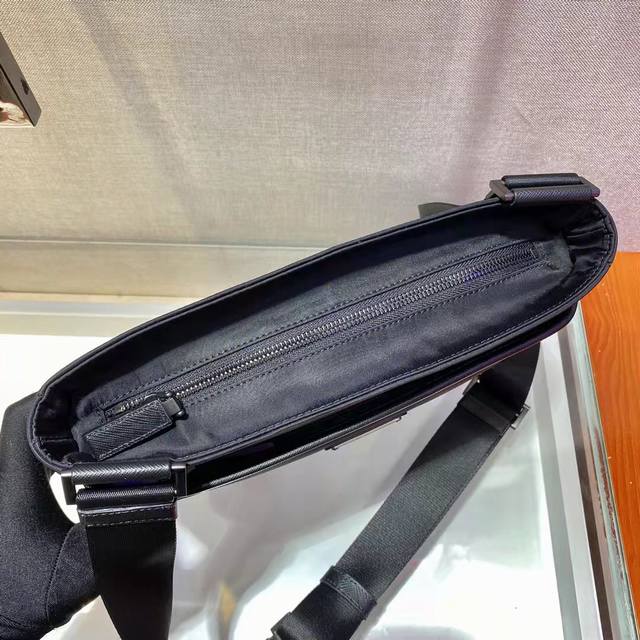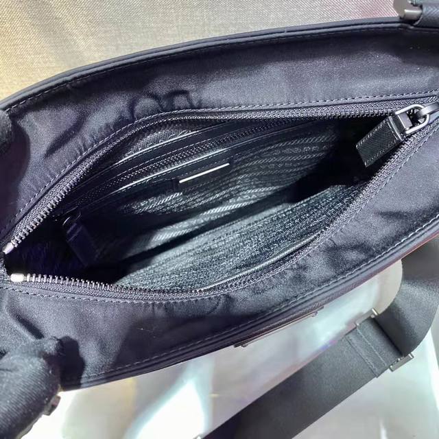 New 2Vh118 Men's Crossbody Bag from the Eco-Friendly Collection. This square shoulder bag is crafted from innovative recycled nylon fabric, creating a distinctive, slender silhouette. It features an adjustable woven nylon strap with a detachable pouch, creating a unique design. The iconic enameled triangular metal logo on the front embodies the brand's identity. If you're interested in this simple, elegant, and unique logo, grab one now! Length: 28cm x Height: 25cm x Height: 6cm.
