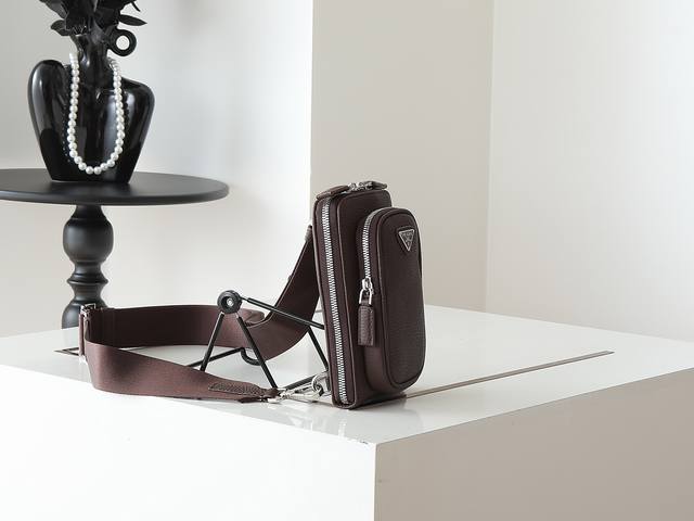 New Arrival Phone Case 2Vh195 DDD This multi-functional modern smartphone case is crafted from deerskin leather, offering a sleek and stylish look. It features multiple zippered pockets and an adjustable shoulder strap, adorned with an enamel triangular metal logo. The card slots are highly practical, making it a timeless and popular choice. Grab yours now! DDD Length 11.5 x Height 18 cm DDD