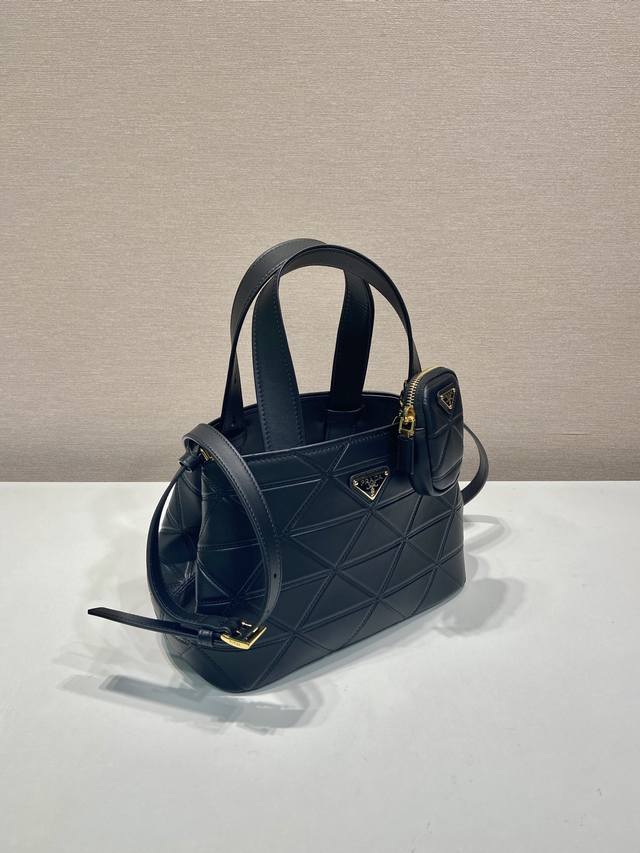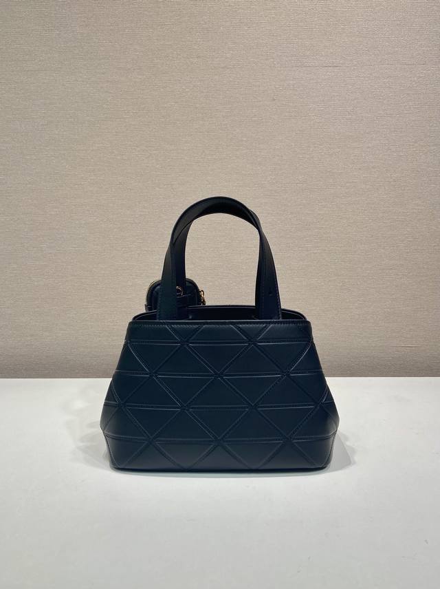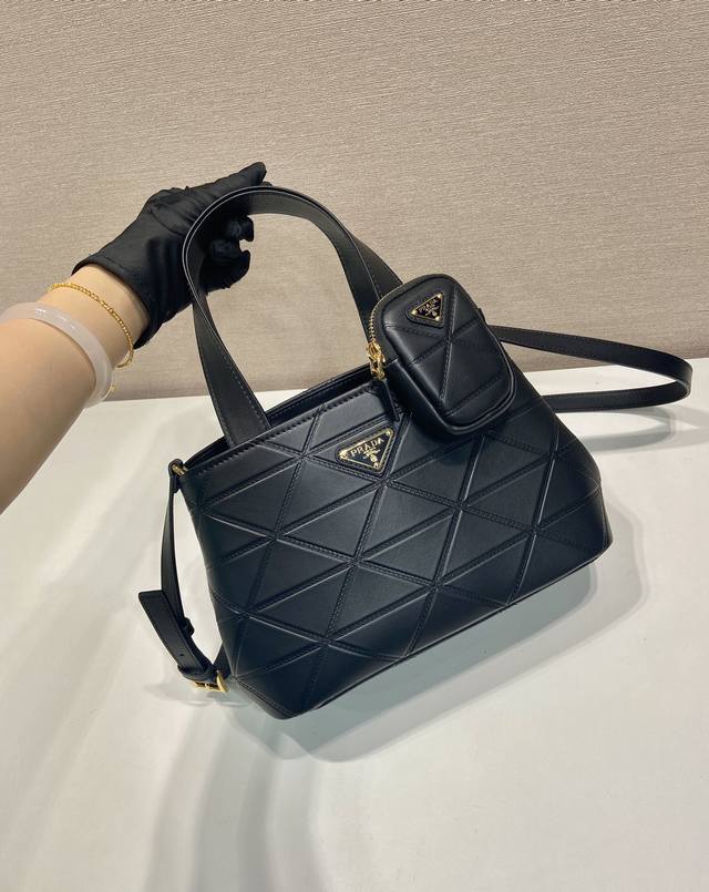 This versatile tote bag features refined and elegant details, decorated with a classic symbol-inspired geometric pattern and adjustable leather handles. The bag comes with a detachable and adjustable leather shoulder strap and a small bag. It has ample space, so hurry up and get yours! 26cm long x 17cm high x 13.5cm