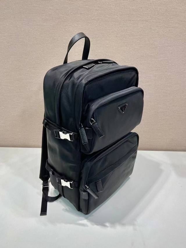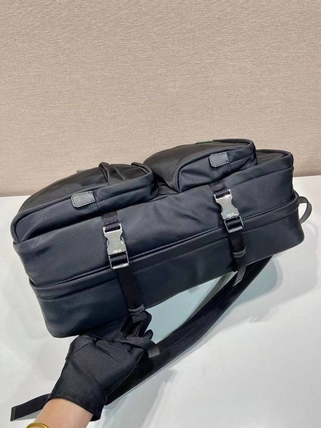 This backpack features an imported nylon fabric for a high-tech look. The zippered main compartment and buckle make organization easy. It has two compartments, three external zippered pockets, and a comfortable mesh back. The interior includes zippered pockets, patch pockets, leather straps, and buckles for storing suit jackets. The side closures and straps make it highly practical, essentially a pull-out suitcase. With multiple compartments and a cool look, guys, go for it!