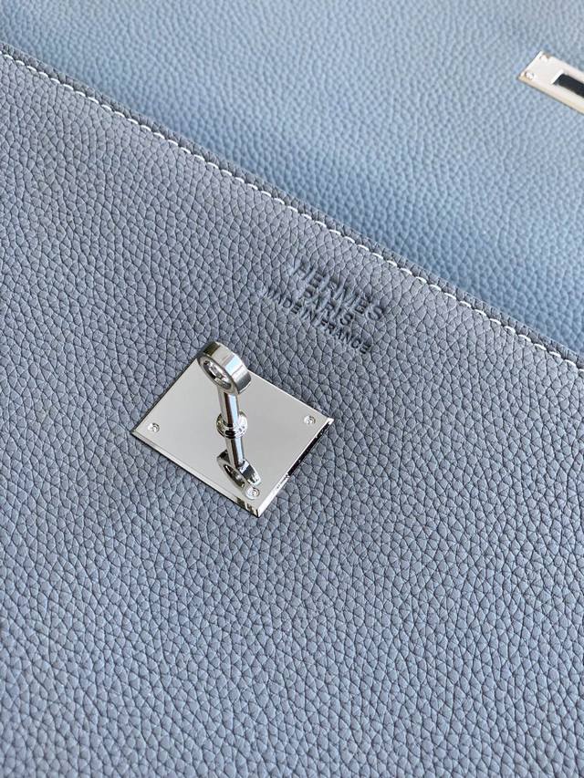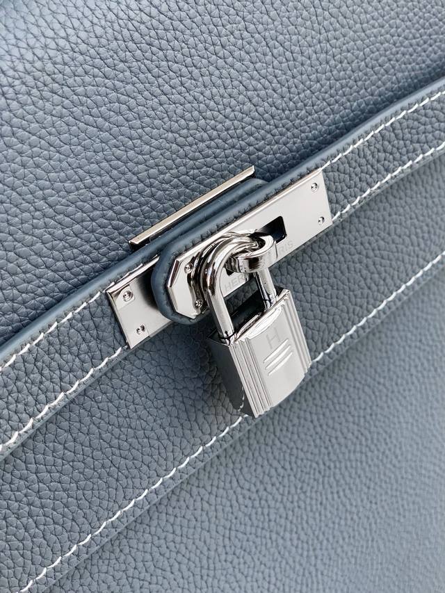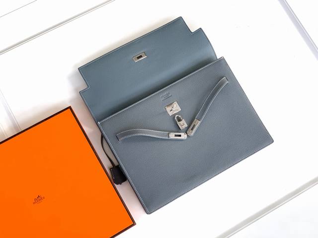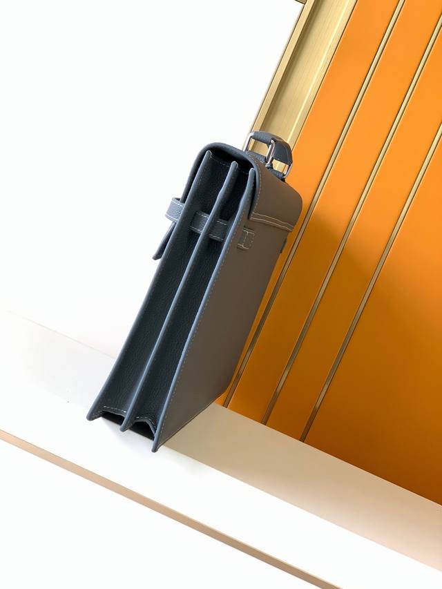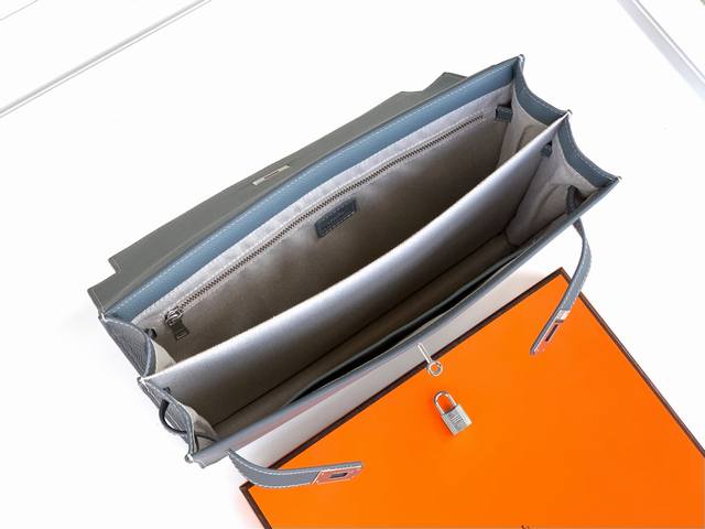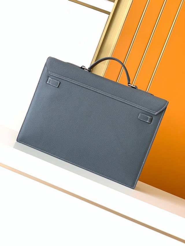New briefcase model: 6093-1B# Gray-blue, top-grade, genuine Emma Italian leather, ultra-soft and smooth, with a premium, classy feel. Exactly the same as the store's, this is a truly high-end product. High-fiber fabric lining, store-brand hardware, and exceptional quality. Dimensions: 38x28x7---
