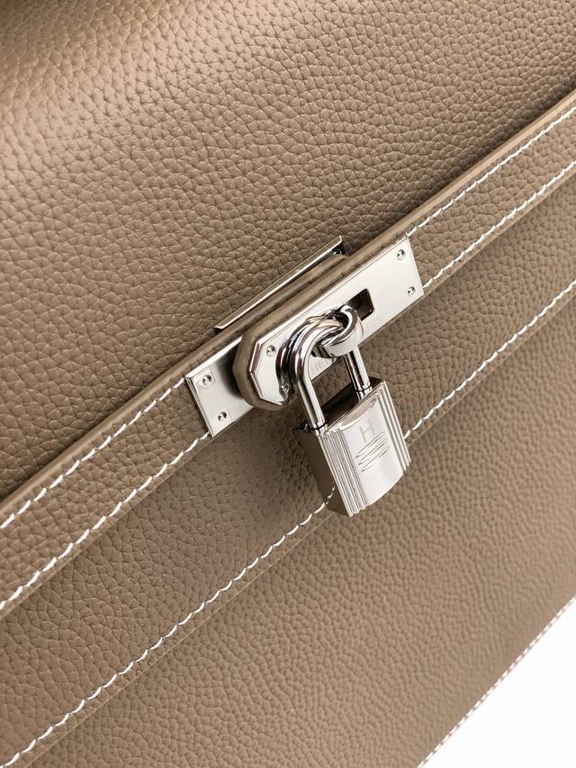 New briefcase model: 6093-1B# Khaki. Made from premium, genuine Emma Italian leather, this is incredibly soft and delicate, with a premium, classy feel. Exactly the same design as the store's, this is a true high-end product. High-fiber fabric lining, premium hardware, and exceptional quality. Dimensions: 38x28x7--