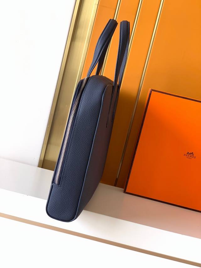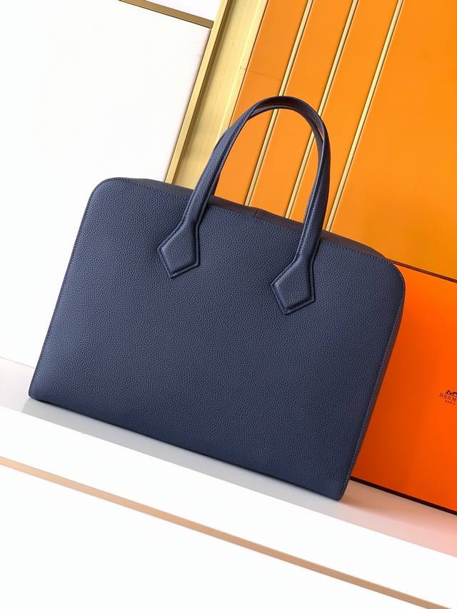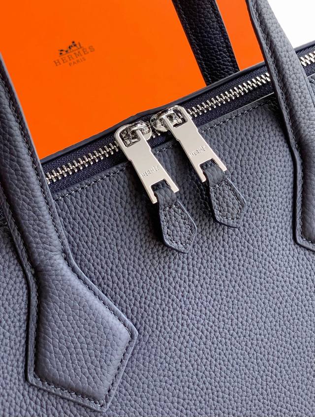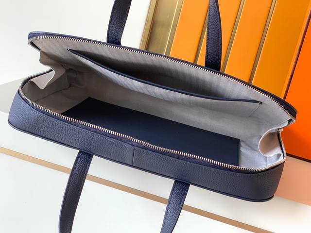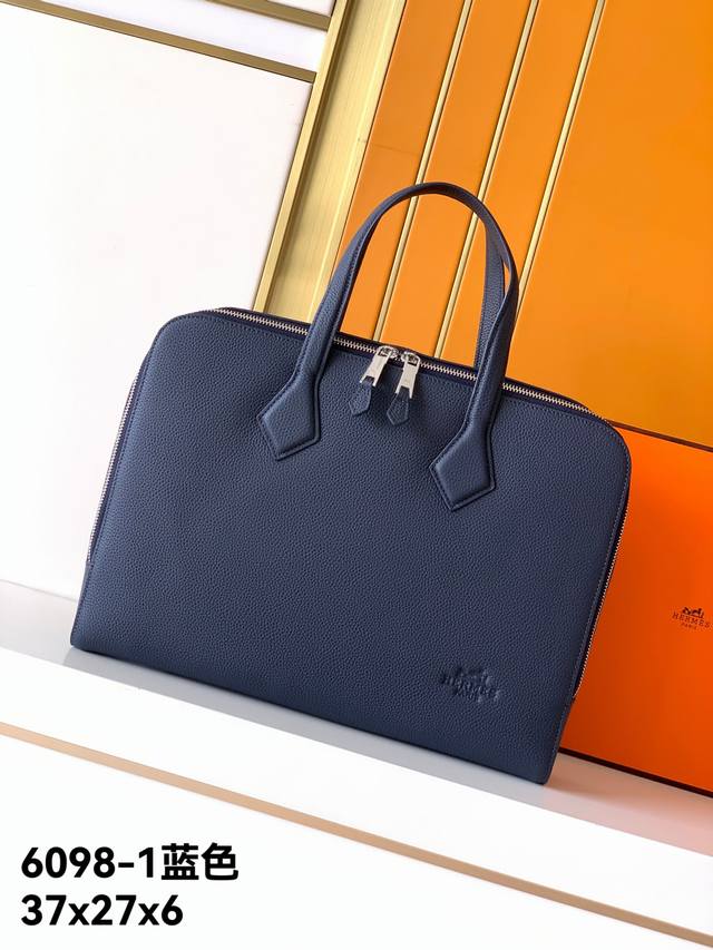 New briefcase model: 6098-1# Blue Elephant.Grey. Made from premium, genuine Emma Italian leather, this is incredibly soft and delicate, with a premium, classy feel. Exactly the same design as the store's, this is a true high-end product. High-fiber lining and exclusive hardware ensure exceptional quality. Dimensions: 37x27x6-----