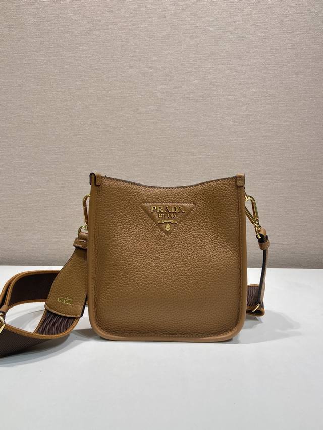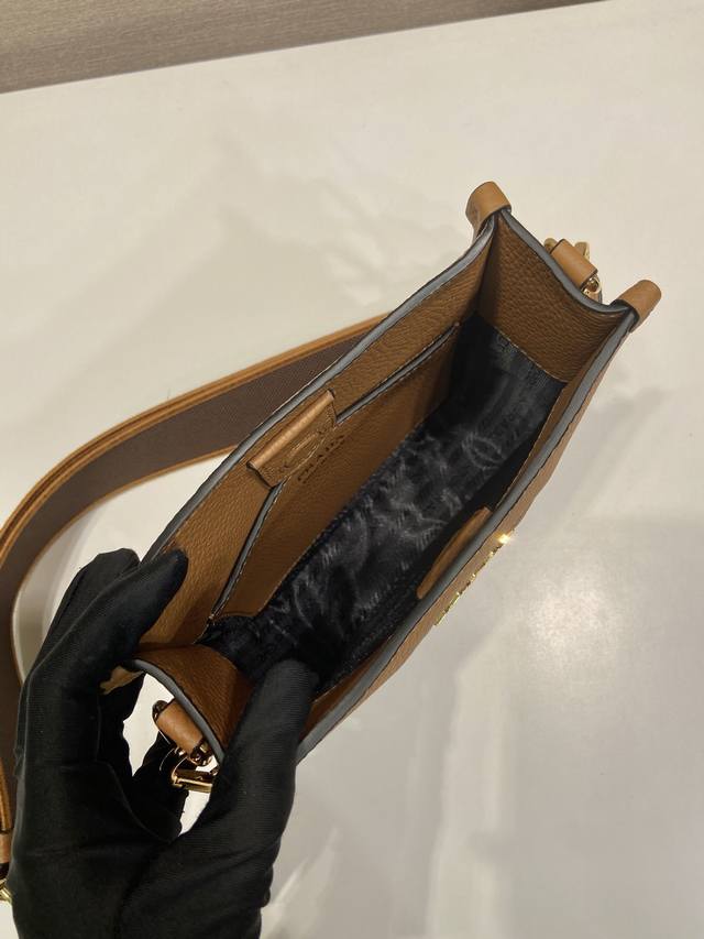 This leather mini shoulder bag features a minimalist design. The metal triangle logo on the front adds a signature touch. It comes with a detachable logo-printed webbing and leather shoulder strap, allowing you to easily switch between outfits and occasions for a modern look. This high-fashion design is a must-have for everyday wear. Hurry, it's stunning!