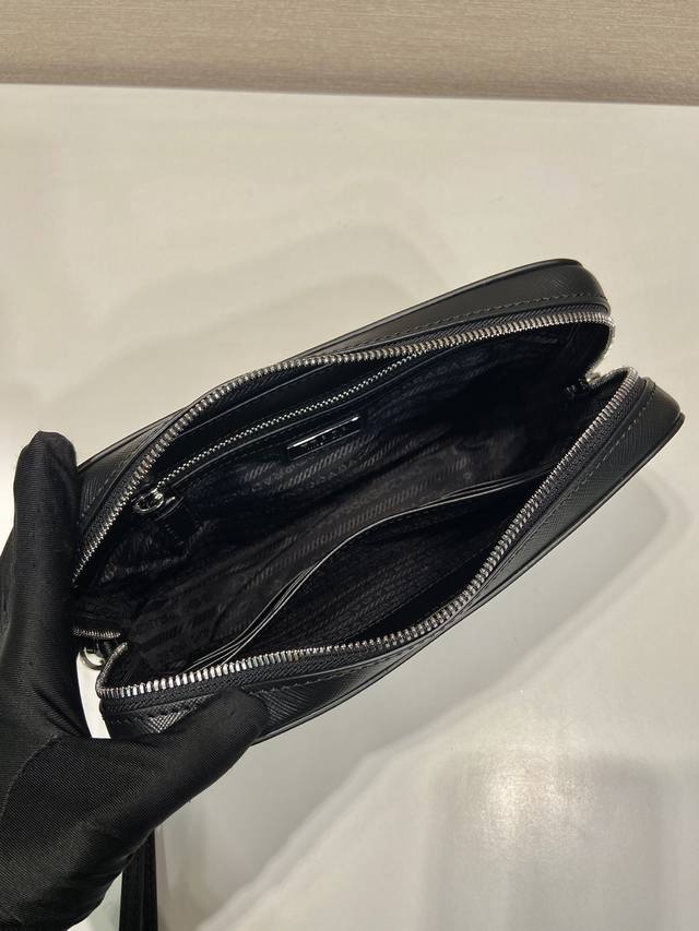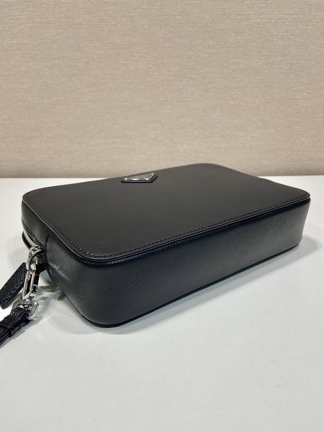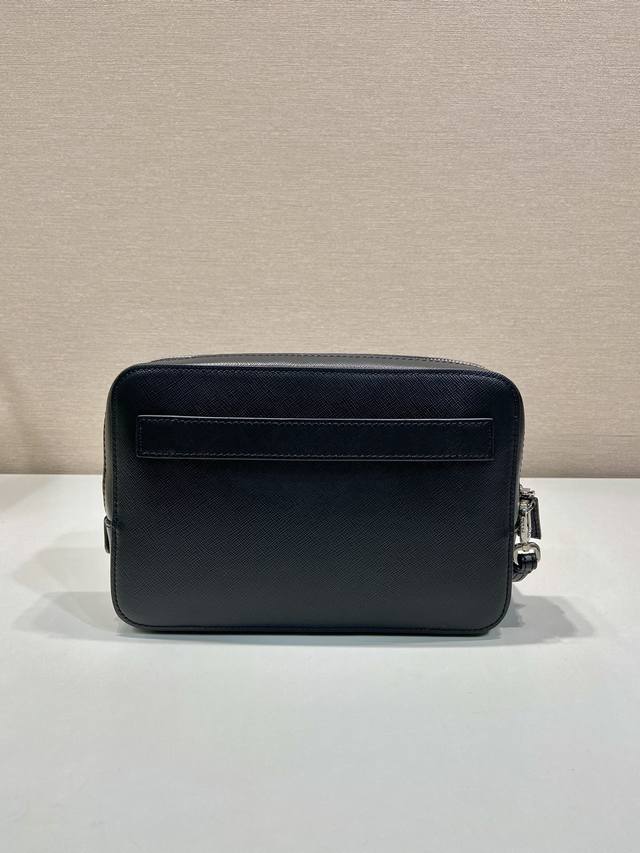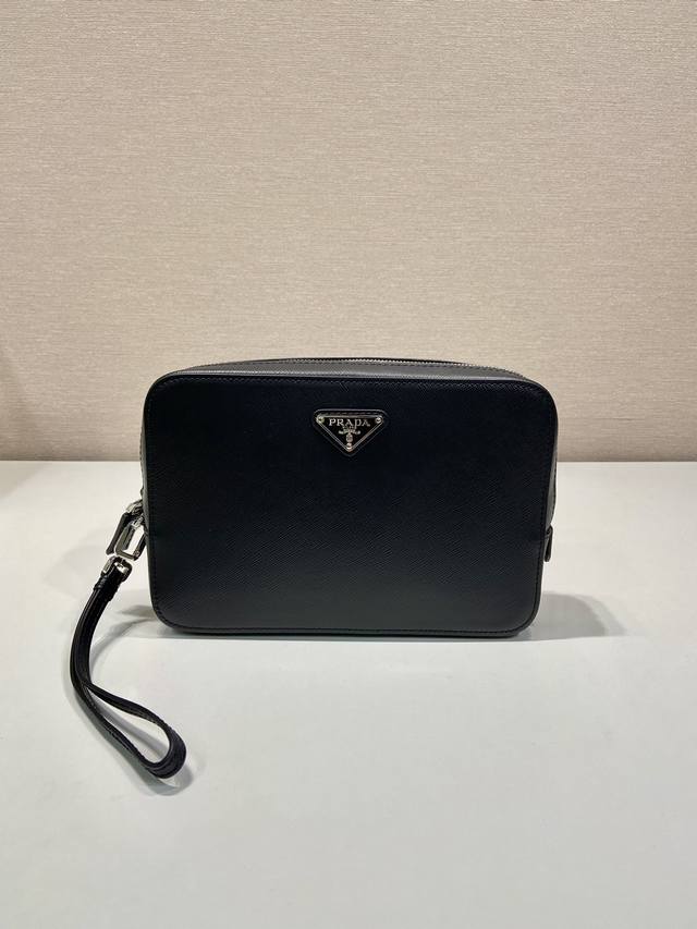 New Men's Clutch 2Vf017. This men's clutch is made of imported Saffiano leather and features the classic triangular logo. Both the back strap and detachable side straps offer versatility. It's a men's clutch that beautifully blends classic and trendy design. Another timeless men's clutch. Dimensions: 23.5cm (L) x 15.5cm (H) x 6.5cm (DDD)