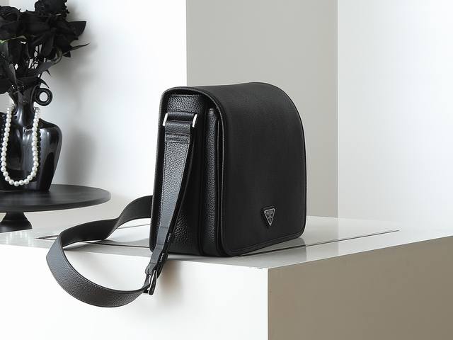 This sophisticated and versatile shoulder bag features a smooth design and is made from soft cowhide leather with a natural-touch surface. The smooth details emphasize the simple silhouette, and the adjustable leather shoulder strap and magnetic flap design create a stylish and elegant upper body effect. Handsome guys, it's worth having, hurry up and get it! Length 32 x height 23 x base 11cm