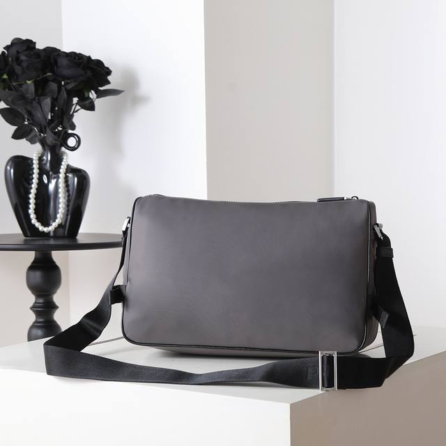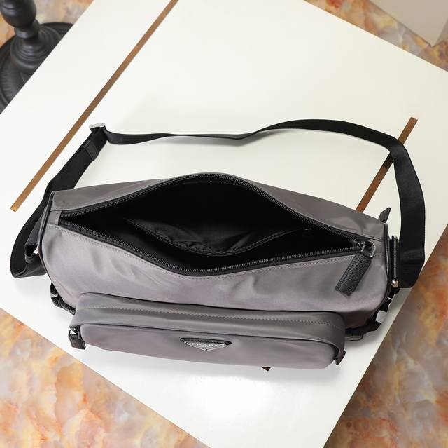 New Messenger Bag 2Vh191 Large Size Ddd This shoulder bag's sporty functionality is defined by simple lines and practical modern details. The bag is crafted from innovative Re-Nylon recycled nylon, paired with Saffiano cowhide leather details for a unique and sophisticated feel. Its multi-functional style incorporates iconic elements, adorned with an enamel metal triangle logo. With its large capacity, this is another timeless bestseller