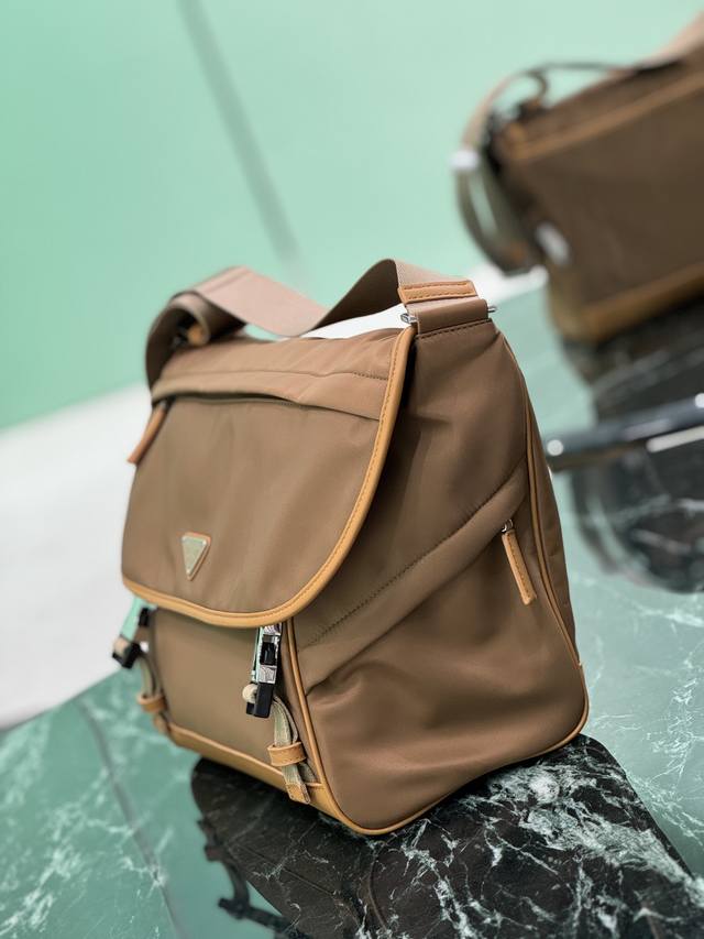 This messenger bag is designed with Re-Nylon recycled nylon fabric, featuring a flap and push-lock closure, three external zippered pockets, an internal zippered pocket, and a slip pocket. It boasts a large capacity and is another timeless bestseller. Guys, grab one now!