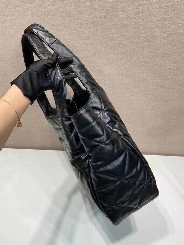 This large shopping bag is made of imported sheepskin with intricate hand-stitching and a diamond pattern. It feels incredibly soft and has a large compartment and is lightweight and very practical. It's perfect for daily use or business trips. I love it! It's so big and stylish! If you like it, hurry up and buy it!