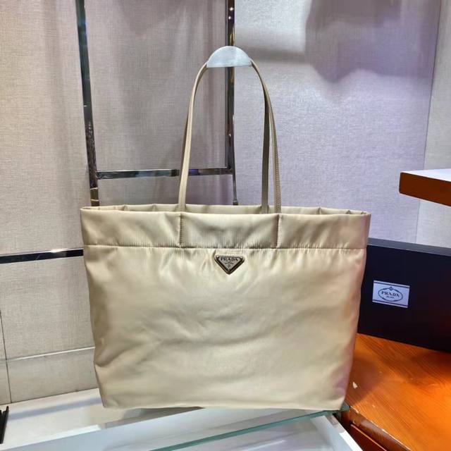 New Tote Bag 1Bg107 This medium tote is crafted from innovative recycled nylon fabric, featuring a simple, stylish design. It features exquisite saffiano leather handles and the iconic enameled triangular metal logo, conveying the brand's message. With its spacious capacity, it's incredibly practical, stylish, and minimalist, making it a timeless shopping bag. If you're interested, grab one now!