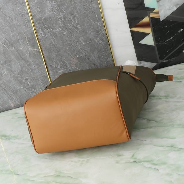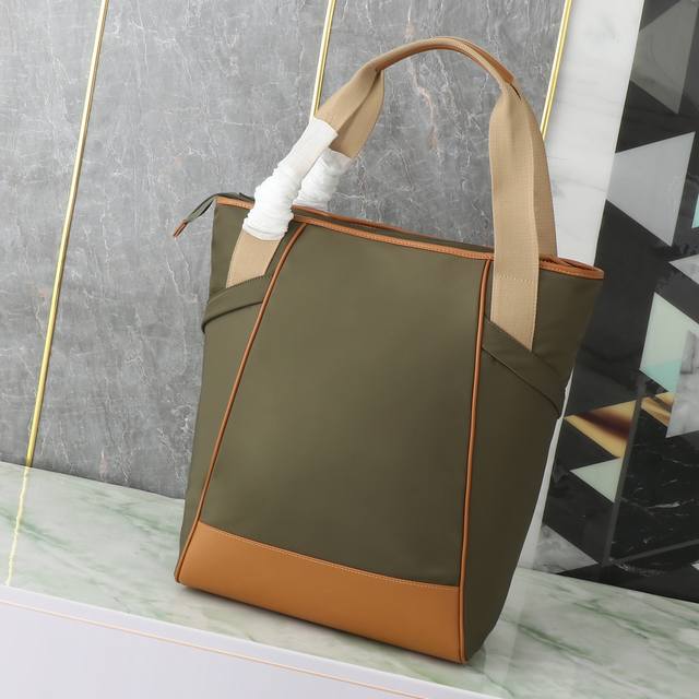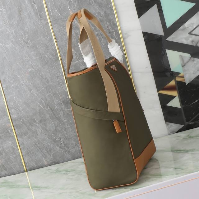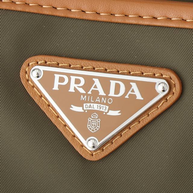 This tote bag uses geometric lines to create a distinctive architectural silhouette, cleverly combining aesthetics and function. The large-capacity design features woven bag handles and two large, practical slanted pockets. Leather details adorn the utilitarian Re-Nylon body, adorned with an enamel triangular metal logo. Lightweight and practical, stylish guys, grab one now!