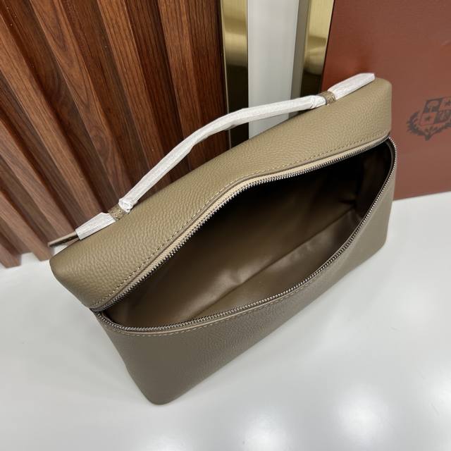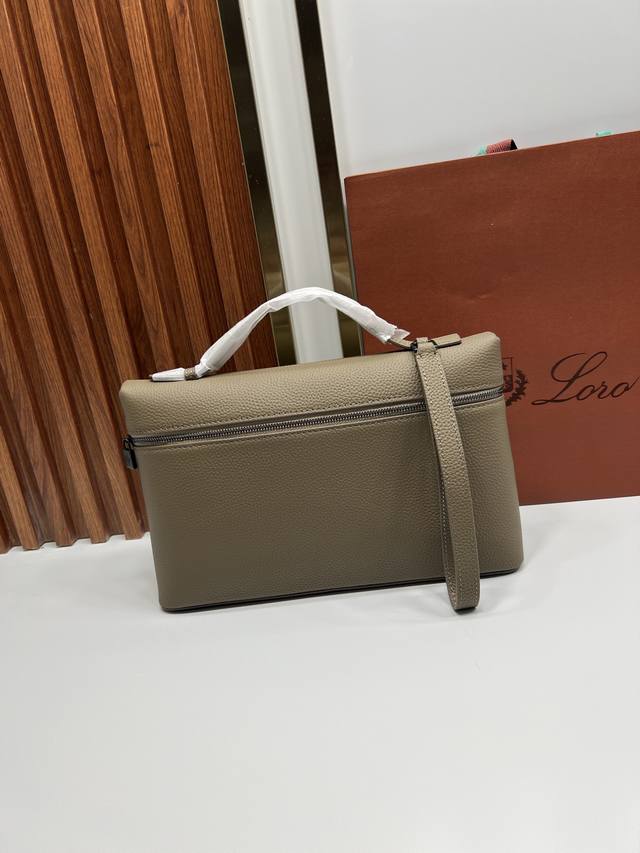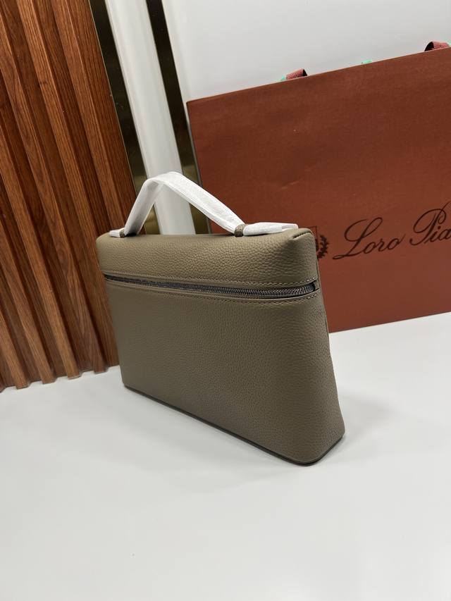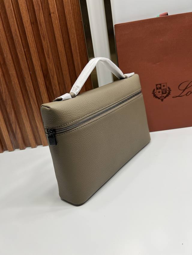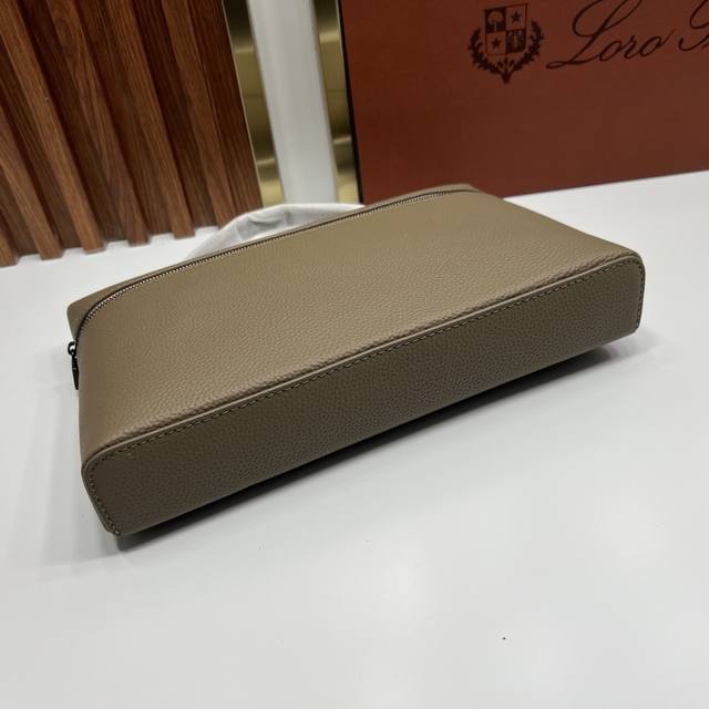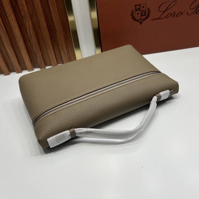 Nuoyou Pianya 1338-7 Extra Pouch Men's Clutch Bag (Ddd) is crafted from premium top-grain cowhide. This versatile and functional handbag features a detachable leather wrist strap and a tonal Loro Piana logo on the zipper pull, exuding refined elegance. (Ddd Dimensions: 29*18*5Cm) Khaki (Ddd)