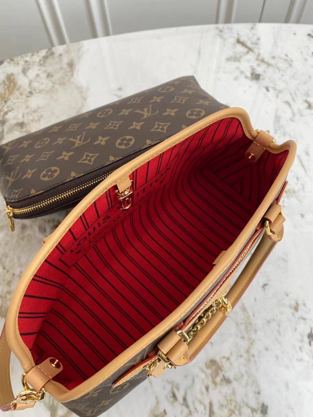 Original factory exclusive background dynamic chip top-grade original single 163 variable code chip, M15208 Monogram Mother-Daughter Handbag Ever More pm. This Ever More pm handbag draws inspiration from Parisian fashion, taking its style from the flowing lines of the Alma handbag. It's crafted from the iconic Monogram canvas and embellished with decorative gold chains and cowhide trim. It also features a detachable shoulder strap, offering multiple carrying options. This tote bag is both practical and sophisticated, and includes a detachable Monogram pouch that can be used as an internal compartment or carried separately. Dimensions: 13.8 x 8.3 x 4.7 cm (Length x Height x Width).