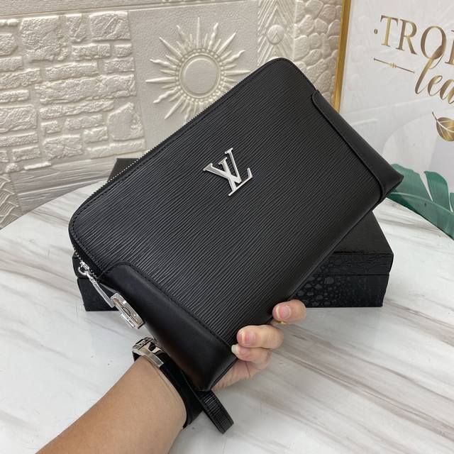 Original goods L's new men's handbag, the fabric is made of imported cowhide with clear leather grain and excellent gloss, the leather feel is good and perfectly interprets the quality of the leather, original custom hardware, top craftsmen fine handwork and perfect car line pictures, real photos, add any effect, the quality is impeccable, all materials are carefully reserved, focusing on high-end only fine products size: 29-18-3.5 Model: 5252-5