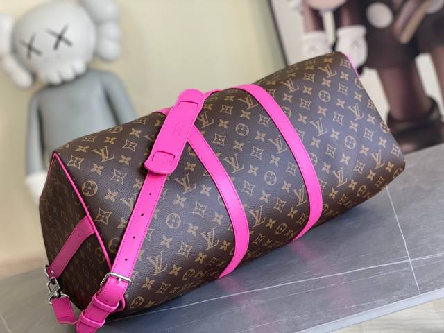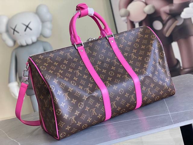 Original M46773 Lu Keepall 50cm Travel Bag. This Keepall is a classic among travel bags. This large Keepall is crafted from Monogram canvas with a detachable leather shoulder strap and a detachable leather ID holder. - Specially coated canvas - Natural cowhide trim - Cotton textile lining - Removable shoulder strap with padded shoulders - Leather handles for comfortable carrying - Large capacity - Carry-on size - Removable leather name tag - Gold metal hardware - Size 50*21*28cm