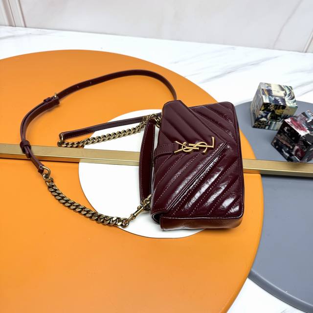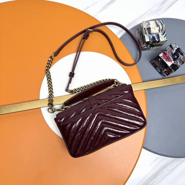 Original Quality Ddd College Glossy Cracked Mini Messenger Bag. A multi-functional piece featuring a top handle and a detachable leather-trimmed chain shoulder strap. Classic yet casual, a must-have for any style! The vintage waxed leather is absolutely gorgeous! Dimensions: 20*13*3cm. Style Number: 779430.