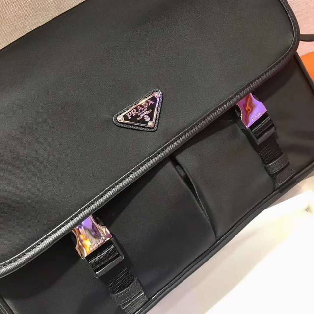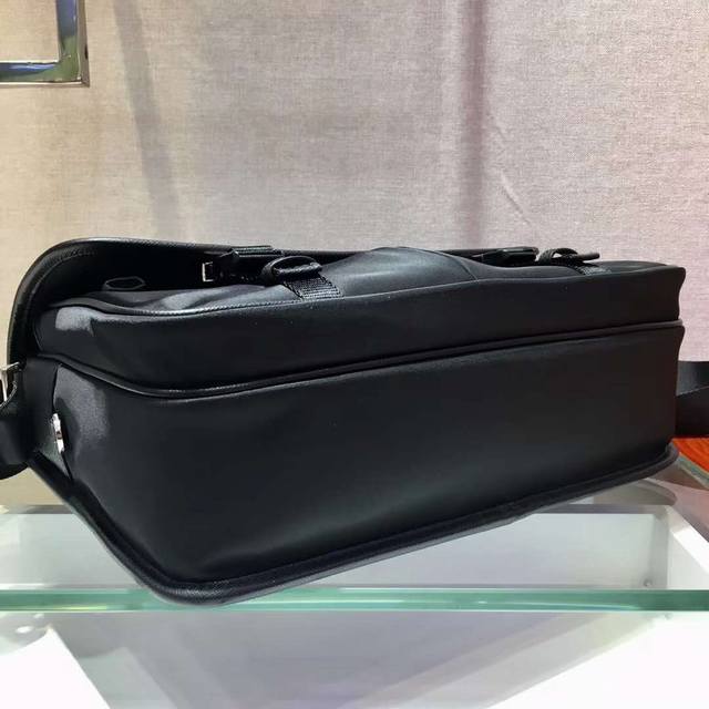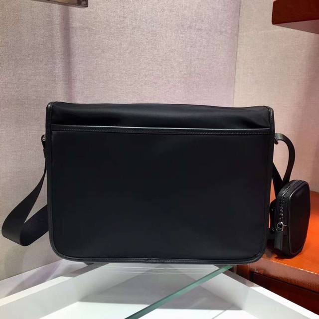 p 's latest men's crossbody bag 2Vd768 has arrived. It is made of nylon with Saffiano leather trim, metal hardware, two side buckles, an adjustable nylon shoulder strap, a zippered pouch, three external pockets, two of which are zippered, an internal zippered pocket, and two internal cell phone pockets. Dimensions: 32