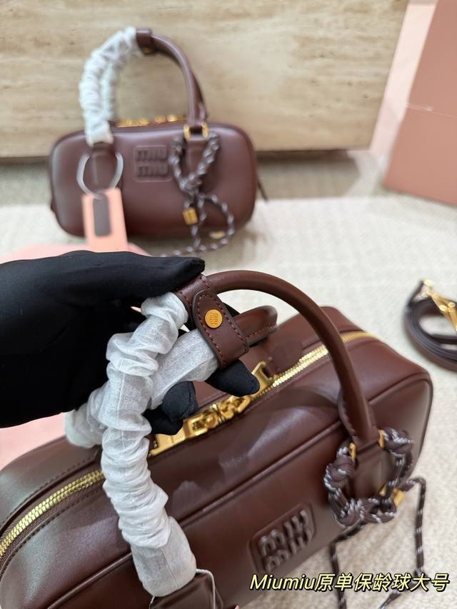 p230 Comes with box and keychain DDD Size: Large 27*13Cm Ddd Small 22*11Cm DDD Miumiu bowling briefcase Ddd The bag has just the right amount of sweetness! Ddd It's hard not to love it! Ddd Can be carried by hand or worn crossbody Ddd Definitely not a small, useless bag, it has plenty of capacity~~ Ddd Makes you look like a little Miumiu princess! DDD