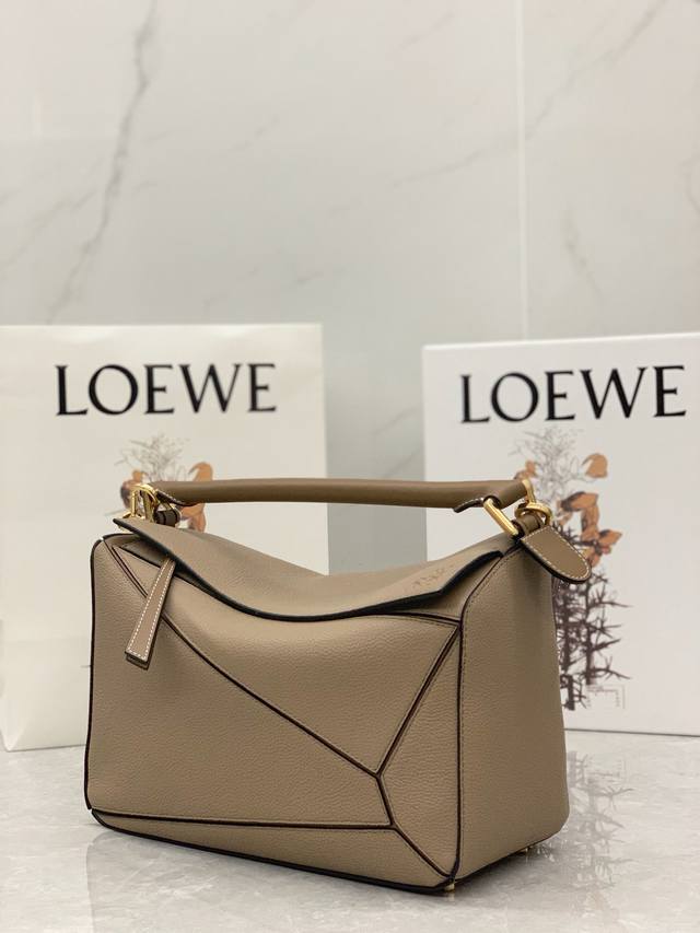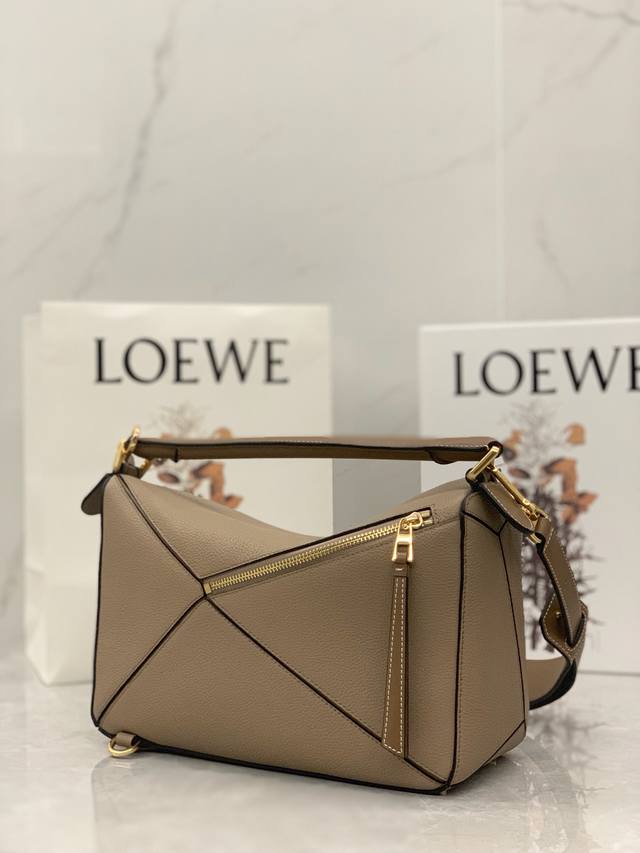 Popular Sand-Colored Puzzle Bag. Made of imported pique calfskin, featuring a unique cut and plain weave stitching. Its distinctive pebbled leather texture adds a unique charm to the overall feel of the bag. Size: Medium 30*12*19Cm.