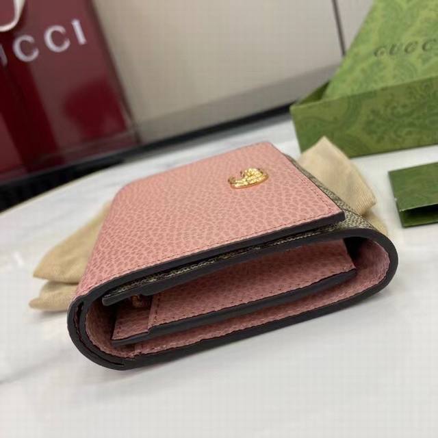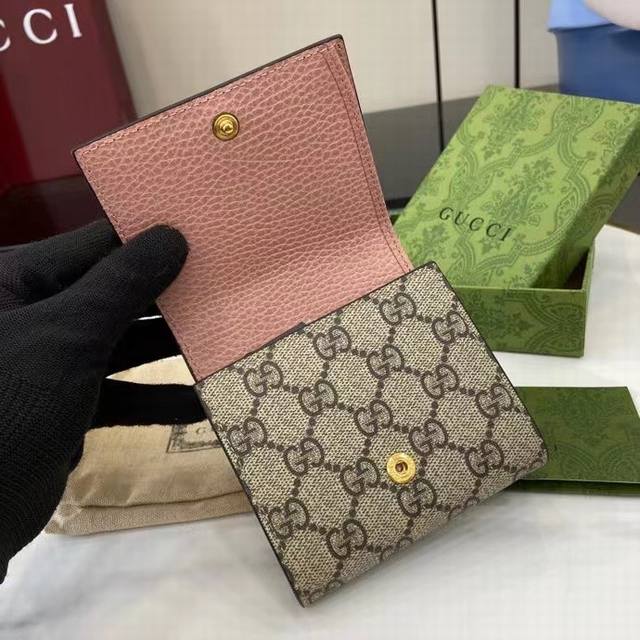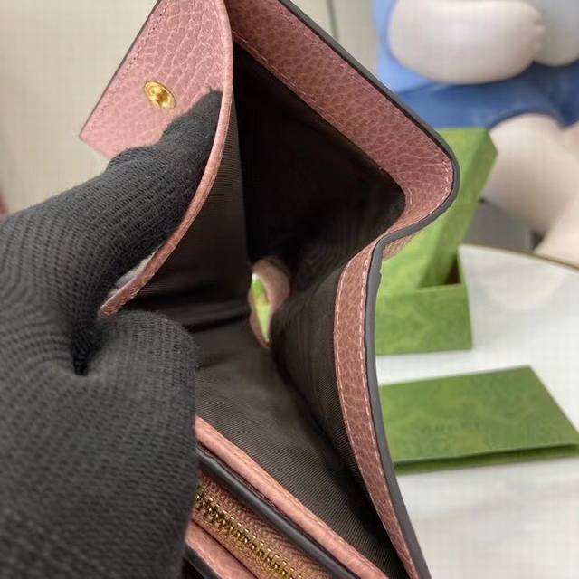 Premium Edition New Product: The new Ophidia series features imported Italian calfskin and classic Double G hardware. New styles and contoured support have been introduced. This structural shape features compartments on the inside. Crafted with premium overseas hardware. Model: 598587. Dimensions: 12cm (L) x 10cm (W) x 3cm (D). Color: Original brown gum pink leather. Made in Italy.
